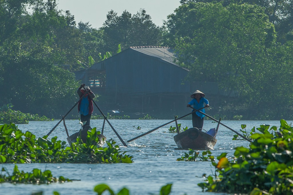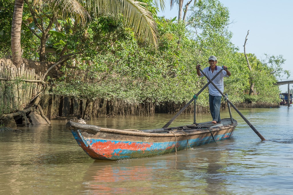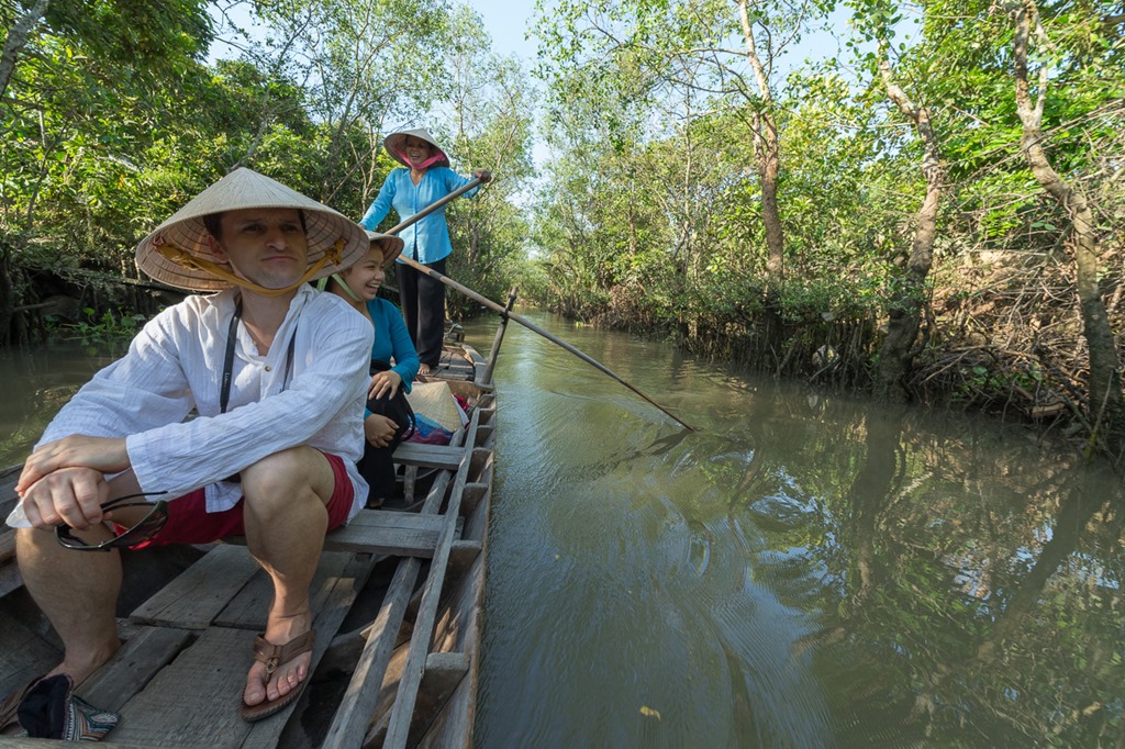 Um durch schmalere Kanäle zu fahren, mussten wir noch auf kleiner Ruderboote umsteigen.