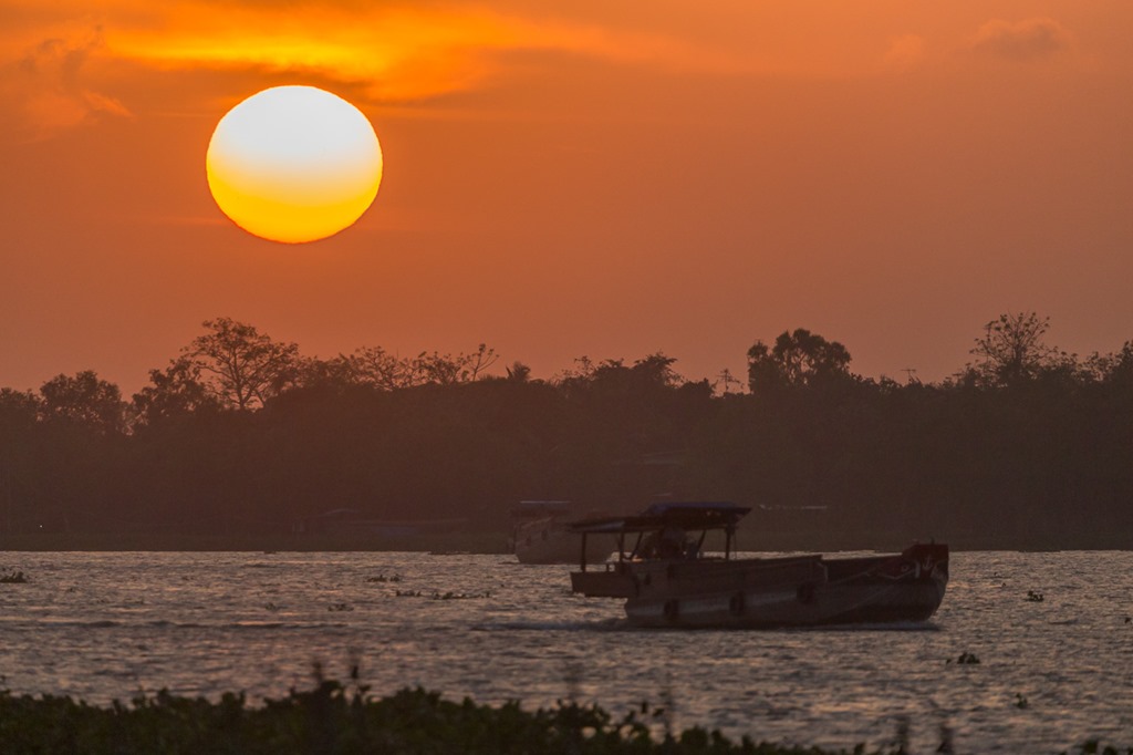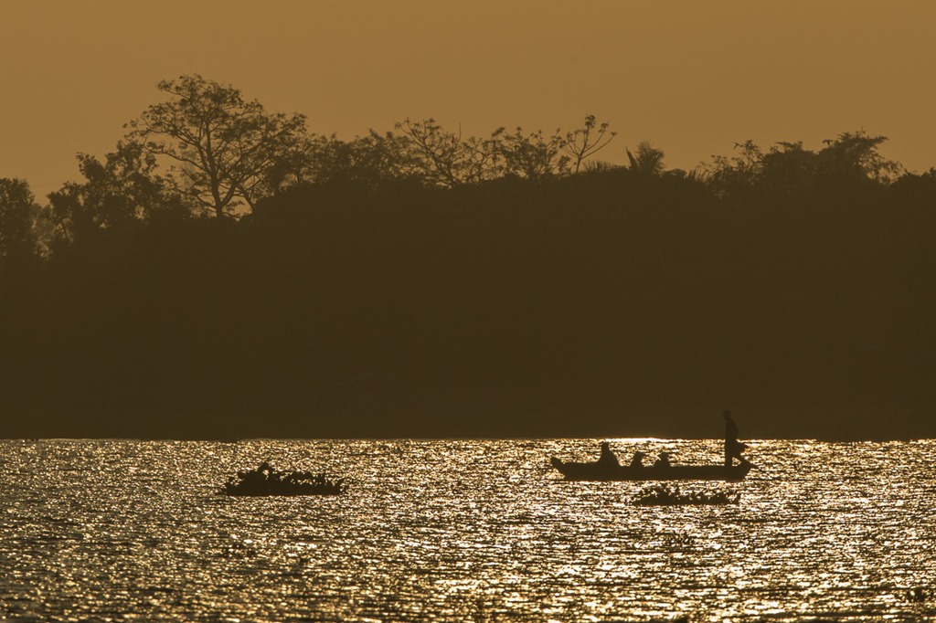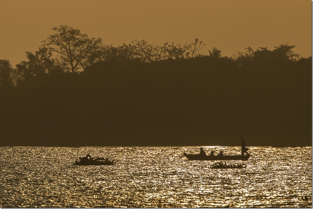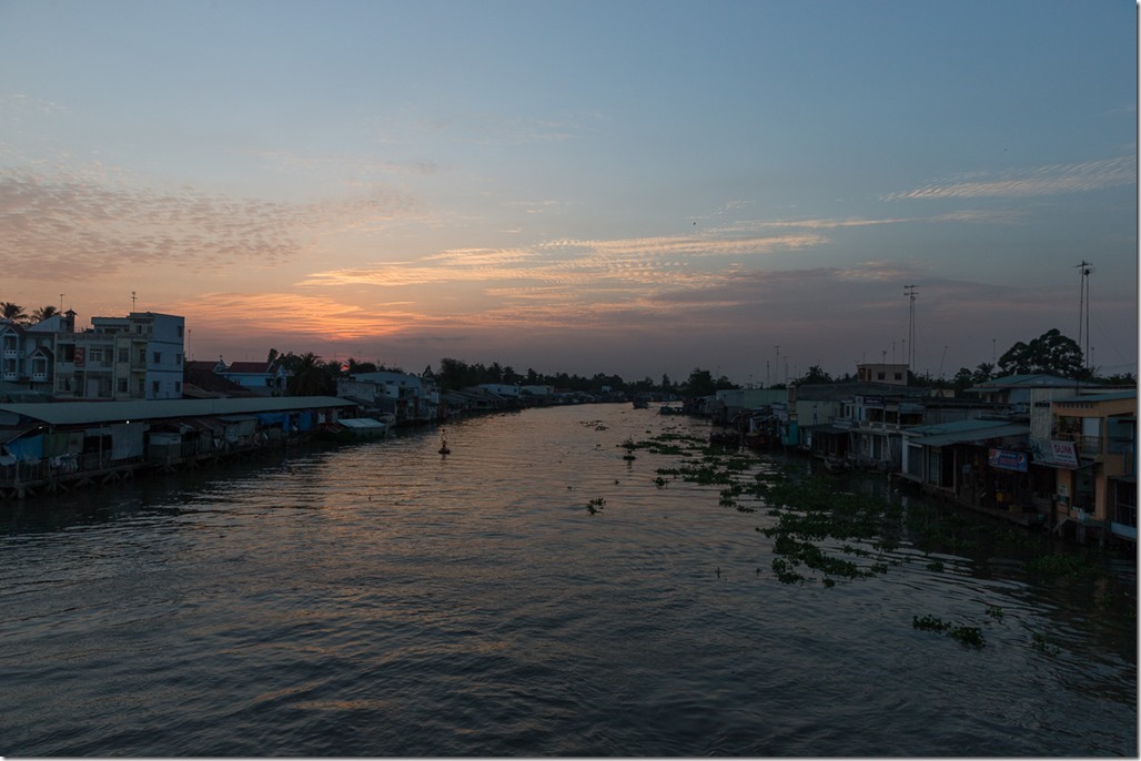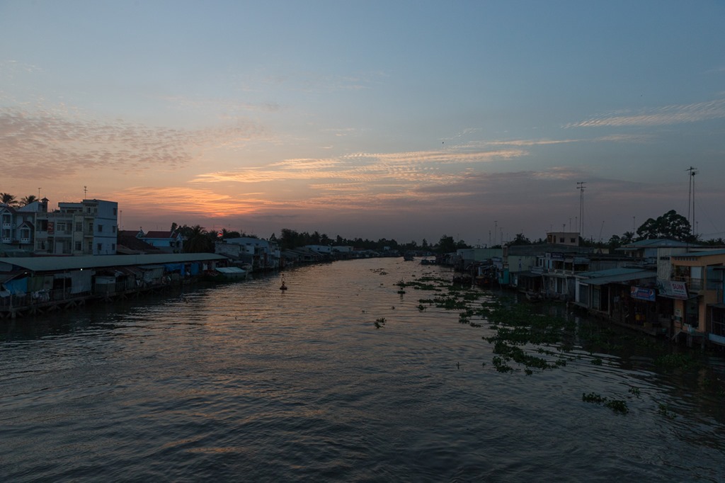 Pünktlich um 06:00 klingelte am nächsten Morgen der Wecker. Wir wollten auf keinen Fall den Sonnenaufgang kurz nach sechs verpassen. Und so gab es ein paar schöne Stimmungsbilder vom Sonnenaufgang über dem Mekong Fluss.
