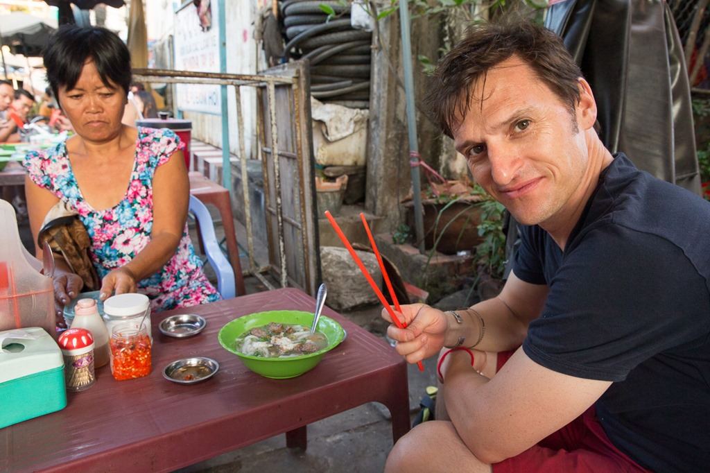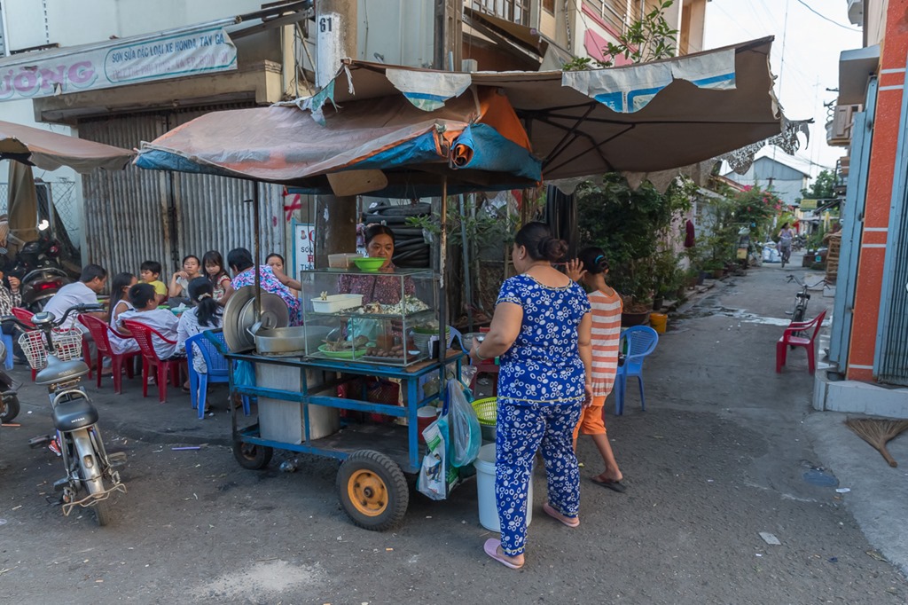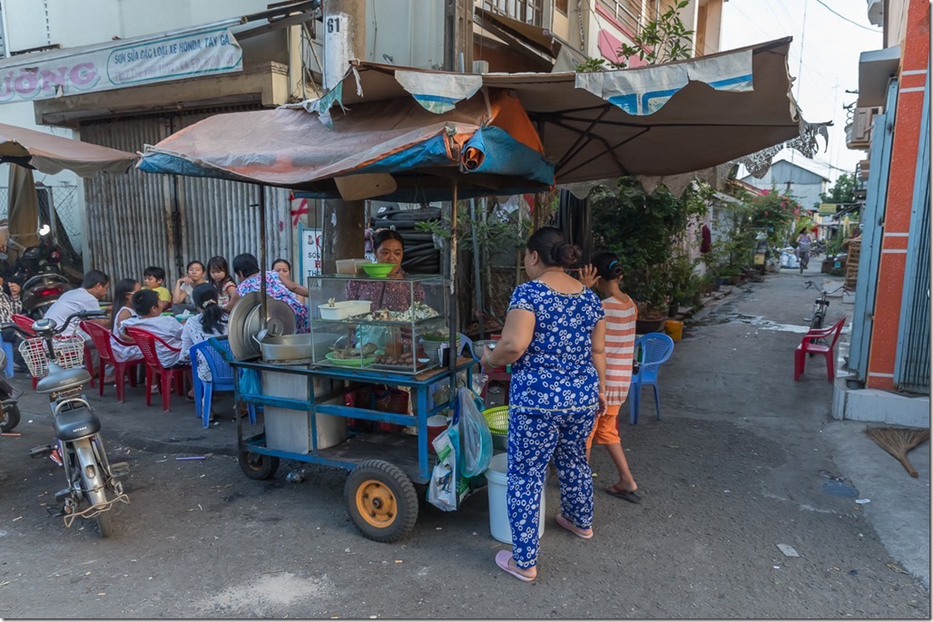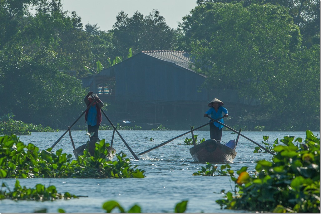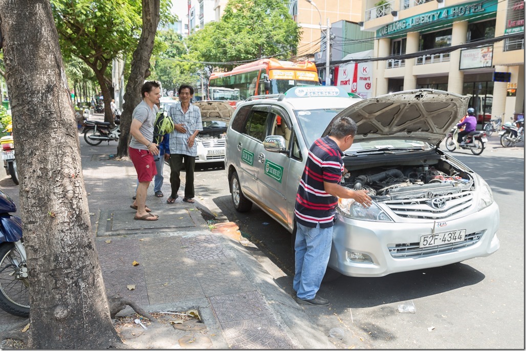 Die Fahrt nach Saigon im Nachtbus hatten wir ja überlebt. Nun galt es aber noch nach Cai Be, einer kleinen Stadt im Mekong-Delta, zu kommen. Ursprünglich wollten wir den Bus nehmen. Nun ist das aber so eine Sache mit den Bussen in Vietnam. Es gibt nicht EINEN Busbahnhof und einen klaren Fahrplan. Und wenn man fünf Leute nach der besten Verbindung fragt, bekommt man gegen acht verschiedene Antworten. Cai Be war ausserdem rund 120 Kilometer weit entfernt. Mit dem Bus sicher wieder 3-4 Stunden. Also entschieden wir uns es mit einem Taxi zu versuchen. Über mangelnde Auswahl von Taxis konnten wir uns bestimmt nicht beklagen. Beim Aussteigen aus dem Bus von Siem Reap lachte uns schon eine ganze Taxifahrerschar entgegen, die ihren Service uns anbieten wollte. Der Preis war einfach noch zu hoch. Nach länglichen Diskussionen konnten wir den Preis auf akzeptable 40$ / Person runterdrücken. Saigon ist einfach teurer als sonst wo im Land… Nun hatten wir aber noch ein zusätzliches Problem: Hausi musste noch die Kleider abholen gehen, die seit unser Ankunft vor fast drei Wochen nun genäht sein sollten. Also blieb ich mit dem Gepäck zurück während Hausi sich mit einem Motorrad-Taxi auf den Weg machte. Ich wurde die ganze Zeit von unserem Taxi-Fahrer nach Cai Be “betreut”, der sicherstellen wollte, dass mich ja kein andere Taxi abschleppen konnte. Haus kehrte aber mit leeren Händen zurück, da angeblich die Knöpfe noch nicht dran waren. Ok, das könnte interessant werden, denn wir wollten morgen von Cai Be eigentlich direkt zum Flugplatz fahren.