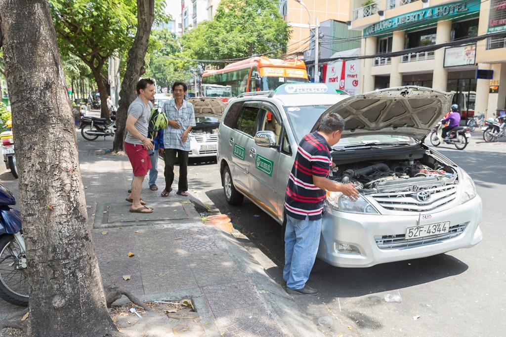 Vorgetäuschte Panne unseres Taxis als Parkierhilfe.