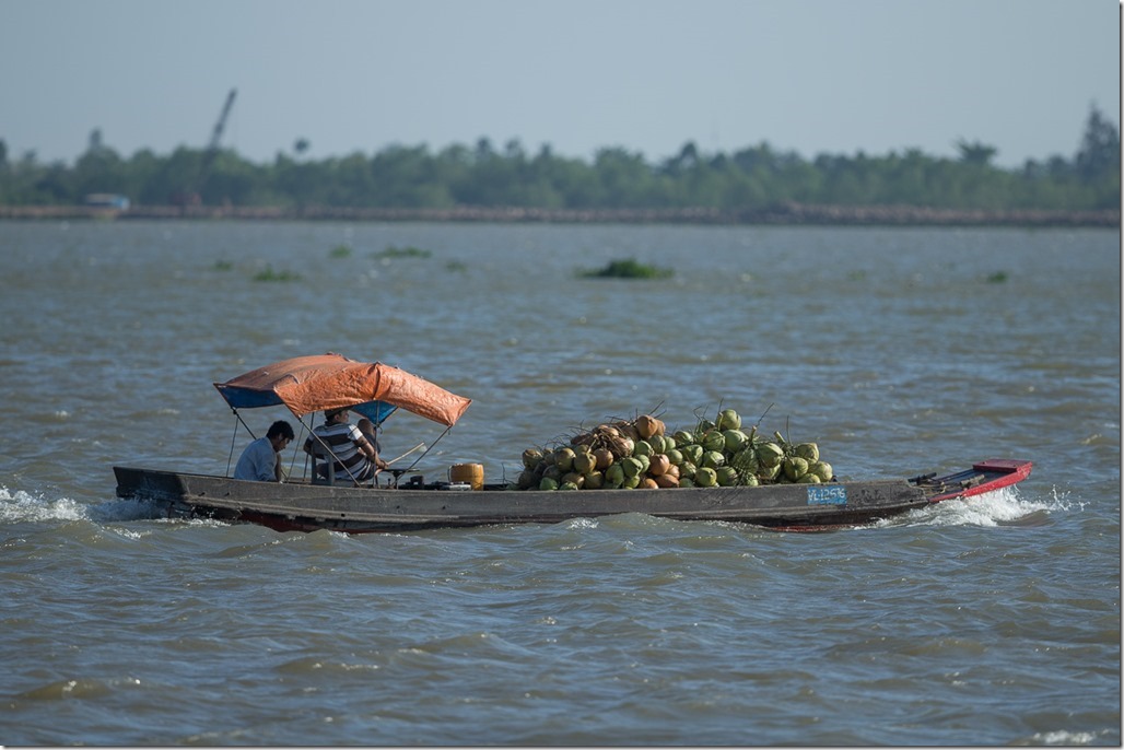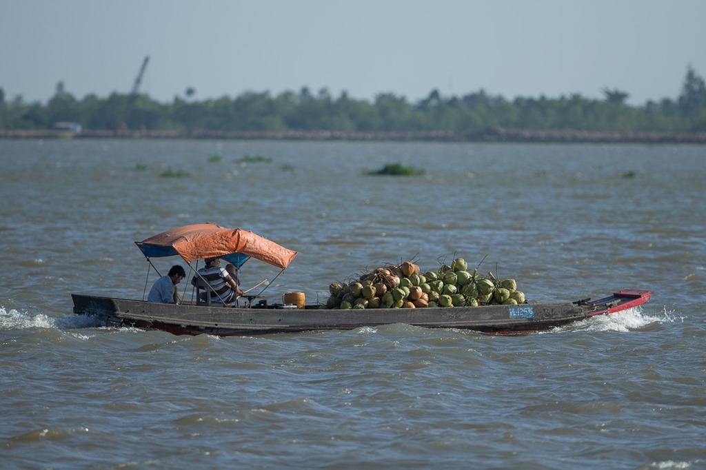 Den Rest des Tages verbrachten wir mit Relaxen, dem Beobachten des regen Treiben auf dem Fluss und noch eine kleiner Fahrradtour. Kleines Boot voll mit Kokosnüssen geladen.