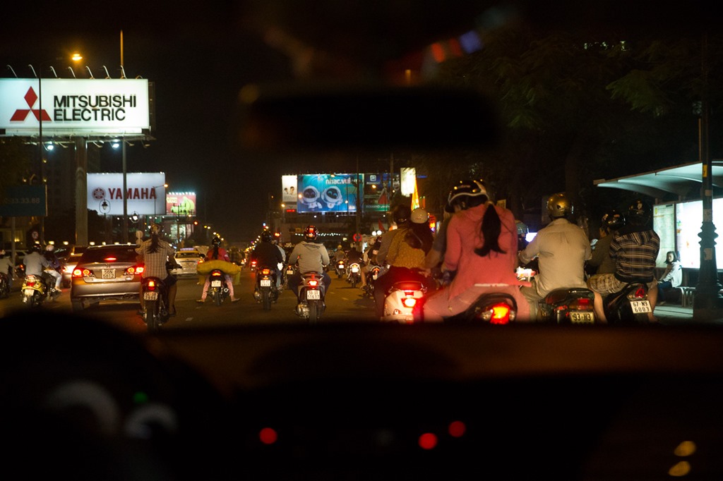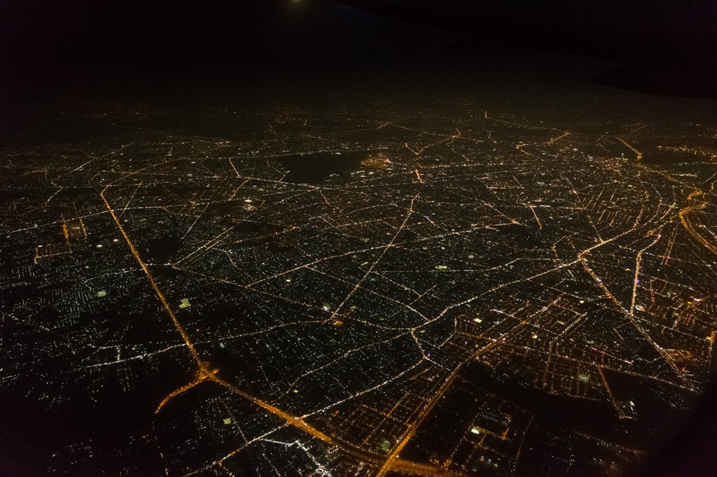Im Anflug auf Saigon war es bereits Nacht. Beim Abflug war es ja auch Nacht, d.h. jetzt sind wir schon einen “ganzen” Tag unterwegs und haben immer noch nicht geleistet.