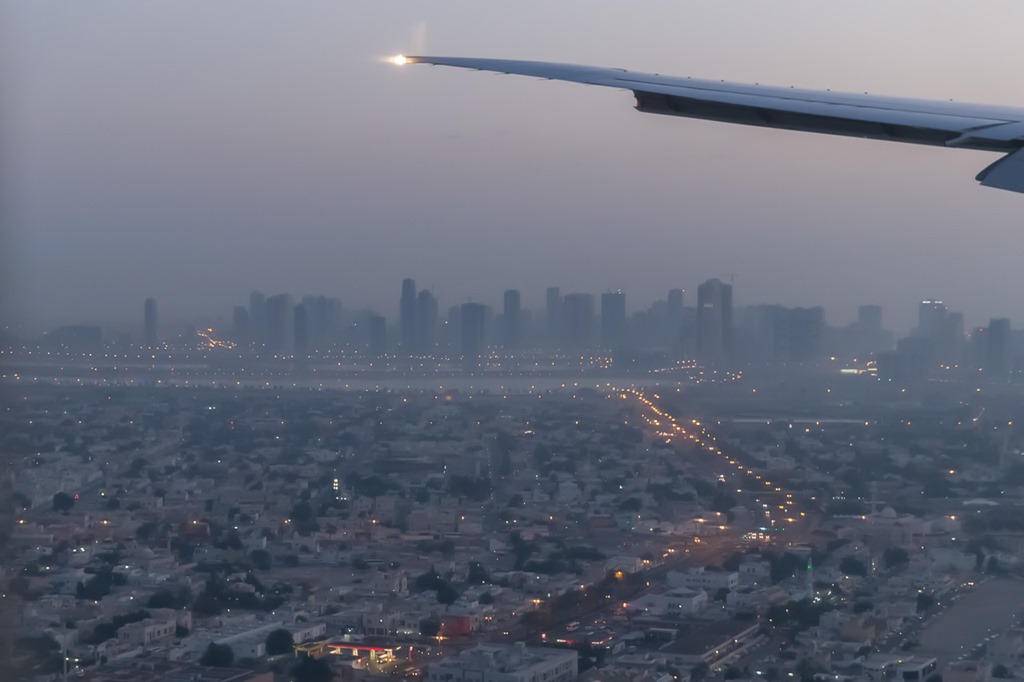 Da wir mit dem Flug Richtung Osten dem Tag entgegeneilten war beim Landeanflug auf Dubai die Nacht auch schon fast vorbei und wir hatten gerade einmal 2-3 Stunden gedöst.