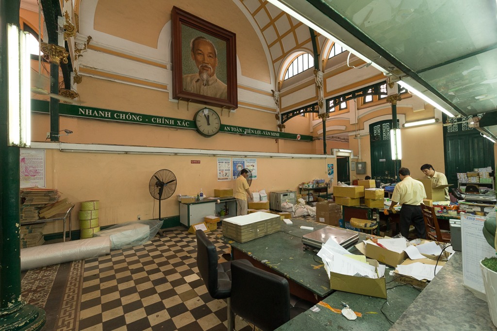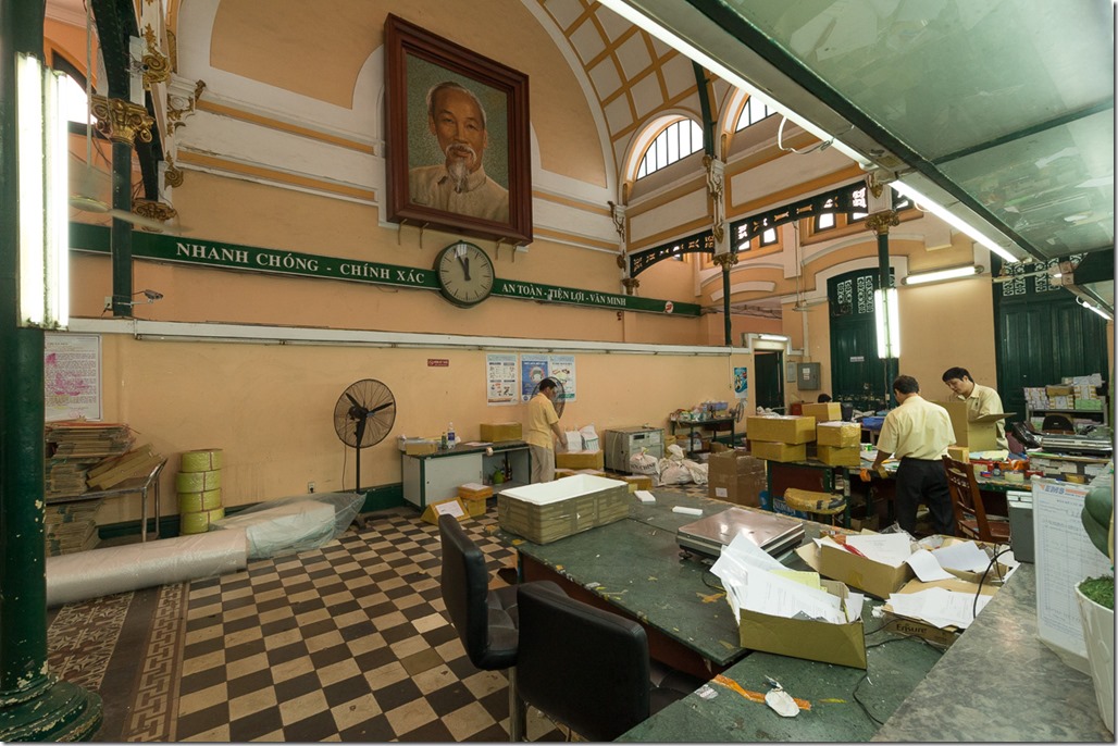 Das Verpacken der Pakete scheint hier auch von der Poststelle übernommen zu werden. Immer wieder sieht man das Bild von Ho Chi Minh