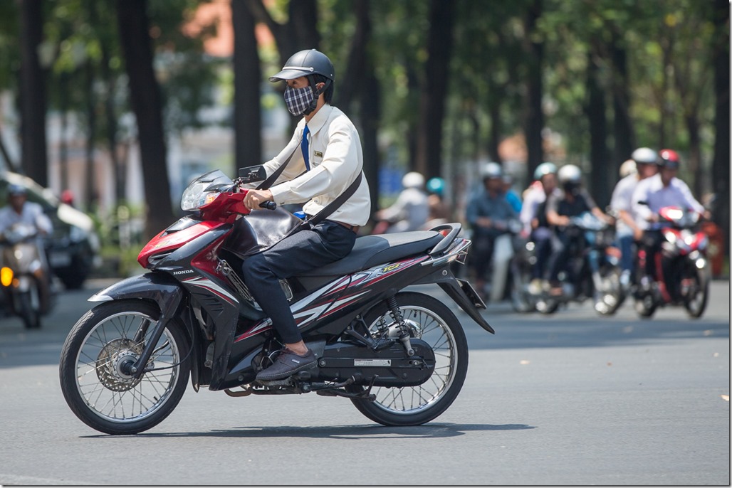 Themenwechsel: Töfli. Ich würde das Verhältnis auf etwa 1:2 im Bezug zur Bevölkerung schätzen. Es gibt unglaublich viele, überall, immer. Auffällig sind fast alle neueren Datums und häufig wird auch ein Mundschutz verwendet obwohl die Luft hier subjektiv betrachtet nicht speziell schlecht zu sein scheint.