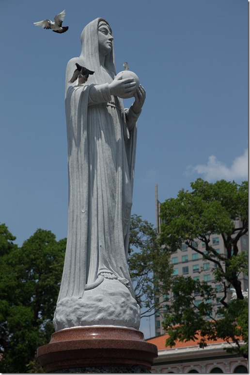 Städte sind ja nicht so mein Ding und so war in Saigon nur ein Tag zur Besichtigung eigeplant. Hausi war derweil total mit dem Kaufen von Stoffen für einen Nähauftrag beschäftigt und so war ich heute alleine unterwegs. Noch bevor ich aber in die Stadt aufbrach, wollte ich noch unsere Flugtickets mit der Air Vietnam bestätigen lassen. Dass ist so eine ganz gespässige Sache hier: Obwohl ich die Tickets mit meiner Kreditkarte schon lange bezahlt hatte, muss man trotzdem nochmals die Kreditkarte überprüfen lassen. Das ist für den Flug, den Hause alleine macht, besonders wichtig, da ich ja nicht mit der Kreditkarte da bin, mit der der Flug gezahlt wurde. Glücklicherweise befand sich das Büro der Air Vietnam genau gegenüber unserem Hotel. Unglücklicherweise muss man dazu aber auch noch den Pass vorweisen, den ich natürlich nicht dabei hatte. So wurde ich zum Pendler zwischen dem Hotel und dem Büro, denn nach der ganzen Prozedur mussten die Pässe ja wieder zurück ins Hotelsafe. Beim Hin- und Hergehen kam ich immer wieder an einem bekannten Uhrgeschäft vorbei. Gekauft habe ich aber nichts. Denn obwohl ich Millionen Dongs dabei hatte, hätte es wohl doch nicht gereicht…