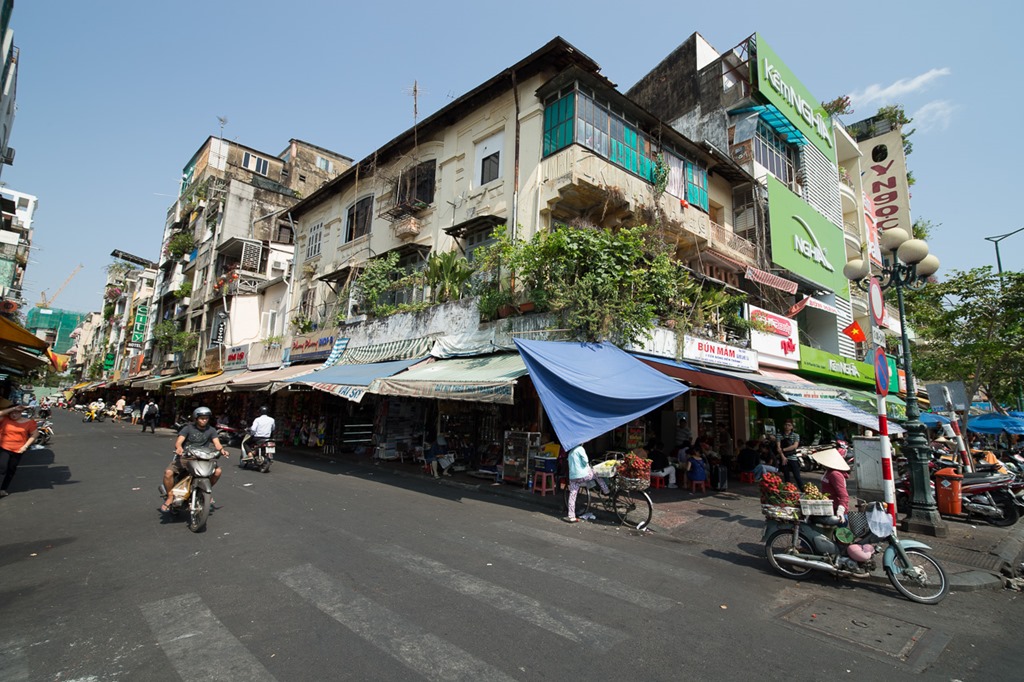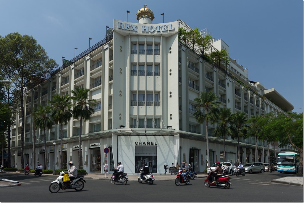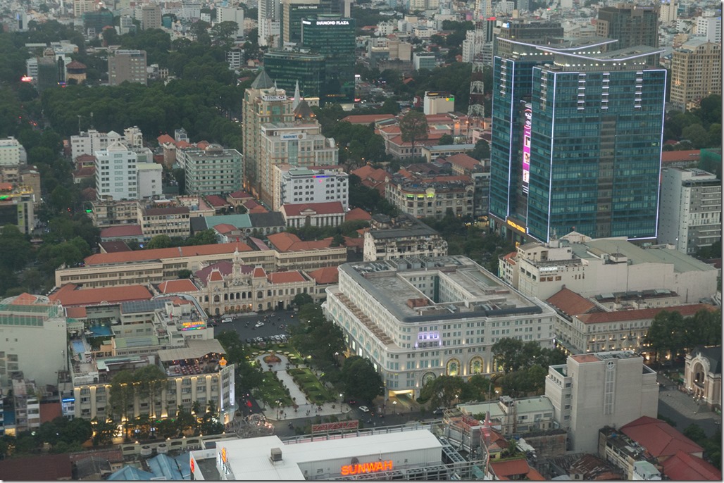 Rex von oben, dahinter das Rathaus, daneben das Gebäude, in dem die Vietnam Airlines ihr Büro hat.