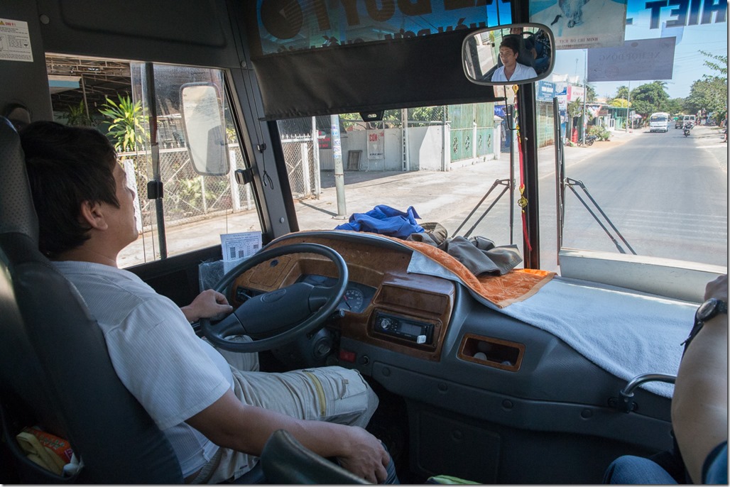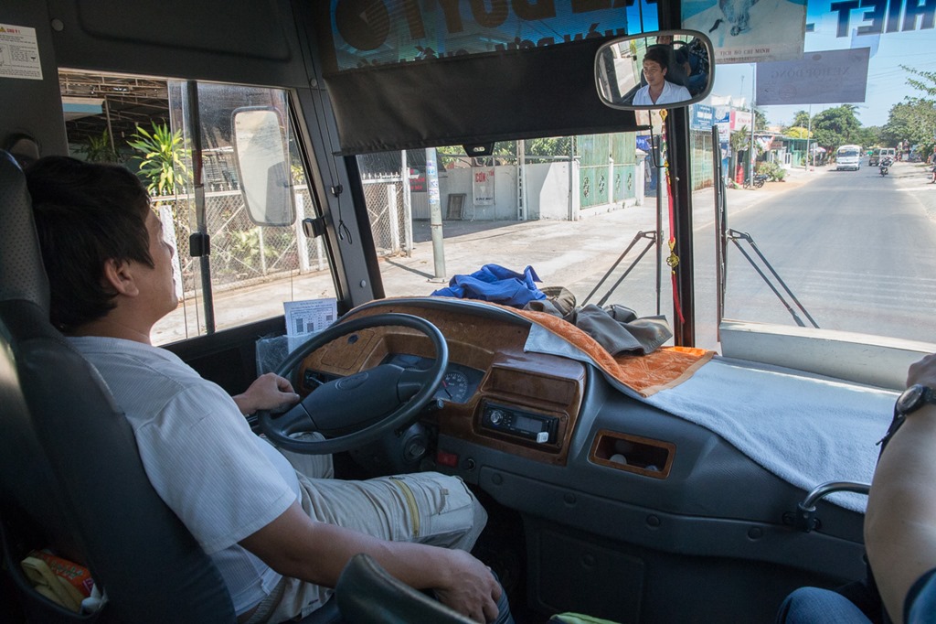Weiter ging es mit dem lokalen Bus. Der hält an, wo immer man die Hand ausstreckt. Ob die 100000 Dong für die Fahrt von 5 Kilometer pro Person ein Rip-Off waren, konnten wir abschliessend nicht sagen. Als Vergleich: Ein Bier kostet gerade einmal 10000 Dong.