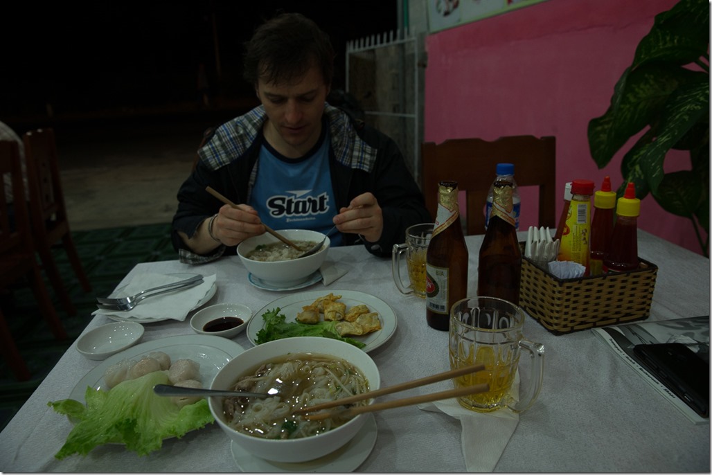 So, nun war es aber höchste Zeit, etwas zu essen. Da wir heute früh unterwegs waren und nicht schon die ganze Speisekarte gestrichen war, konnte ich heute erstmals Reisnudel mit Beef testen. Sehr fein und definitiv kein Boullion-Style. Daneben gab es frittierte irgendwas-Taschen und Reistaschen (Dim Sum oder so ähnlich, eigentlich aus China).
