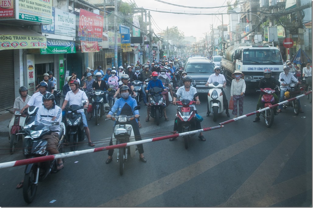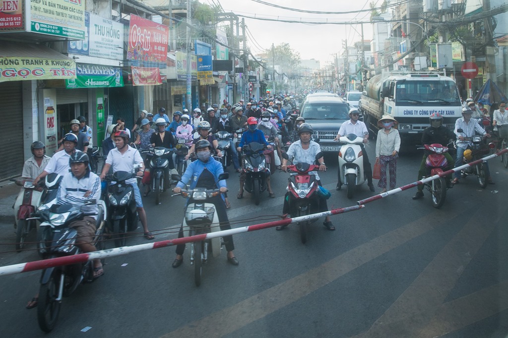 Viele Vietnamesen verreisen offenbar mit den Motorrad, dass sie in spezielle Wagons einladen können.