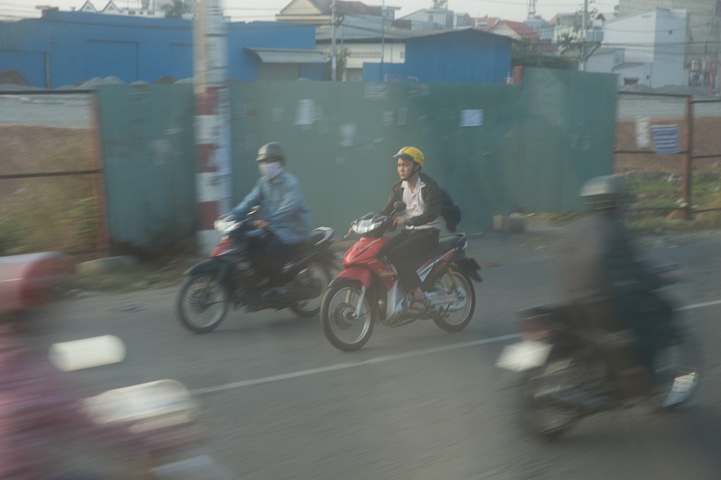 Einer der wenigen Motorräder, die mit unserer Geschwindigkeit mithalten konnten. Bei dem starken Verkehrsaufkommen auf der Strasse war das  aber ein Selbstmordkommando.