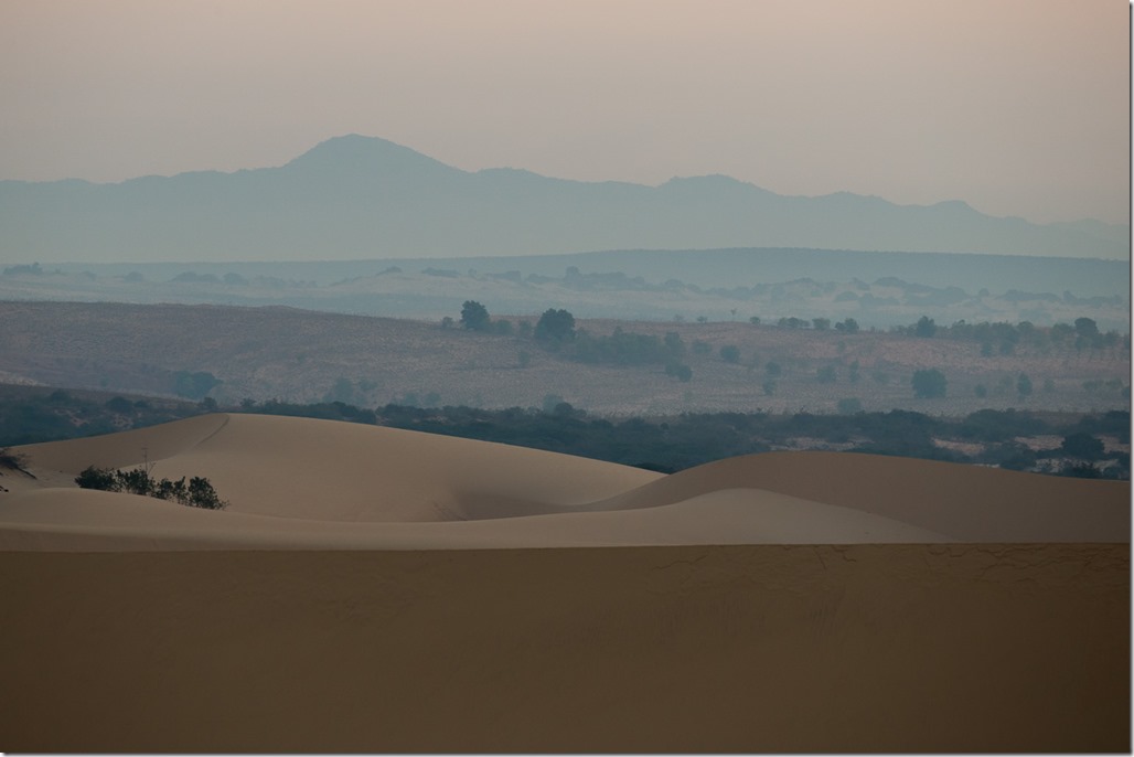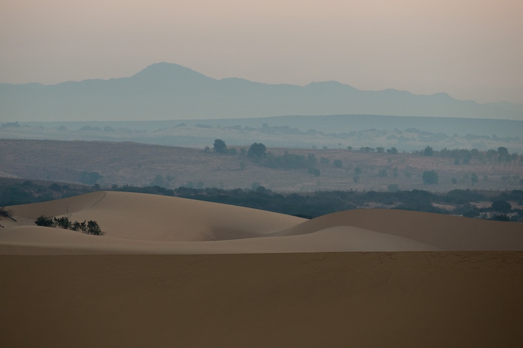 Noch vor Sonnenaufgang waren wir da und konnten auf die Dünen kraxeln. In der Ferne waren die ersten “richtigen” Berge sichtbar.
