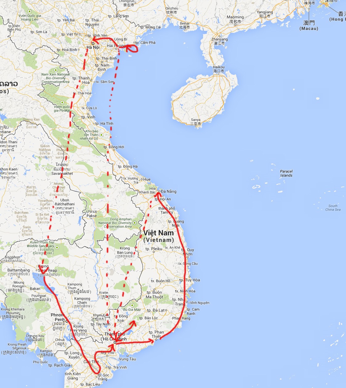 Obwohl eigentlich nicht so viel für die Reise geplant werden sollte, war es schlussendlich eine Planungsorgie. Das lag daran, dass die Reise nach der anfänglichen Planung nochmals um 4 Wochen nach hinten geschoben wurde, da wir das Tet Festival anfangs Februar, wo jeder in Vietnam rumreist und deshalb viele Orte überlaufen sind, vermeiden wollten. Ausserdem wollte ich eine paar Tage Vögel beobachten, was man zu dieser Jahreszeit besser im Süden des Landes macht. Die Ha Long Bucht im Norden wollte ich auch nicht verpassen und ein Abstecher nach Kambodscha nach Angkor Wat sollte auch noch drin liegen. Rausgekommen ist ein Zickzack-Kurs mit 3 Flügen, die aber immer in der Nacht sind und ich somit am Tag immer noch etwas unternehmen kann. Apropos Flüge in Vietnam. Da muss man  immer mindestens eine Million investieren. Huch? Kein Problem, denn eine Million Dong entspricht knapp 50 Fr und somit sind die Flüge in Vietnam sehr billig Smiley .