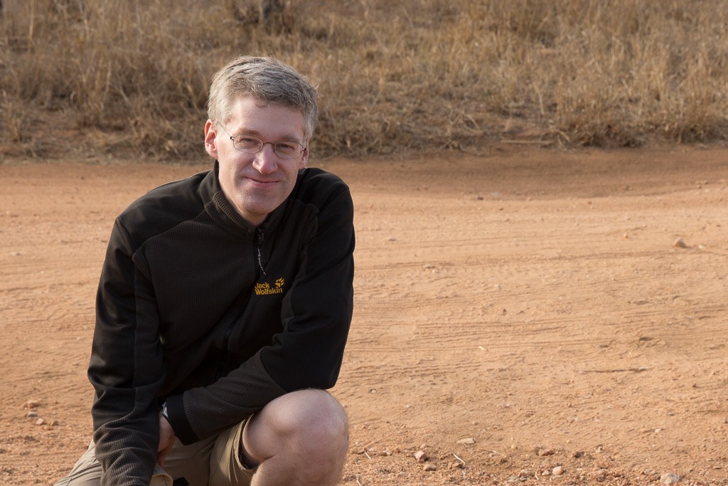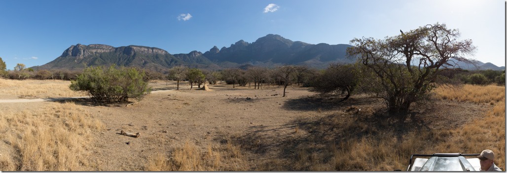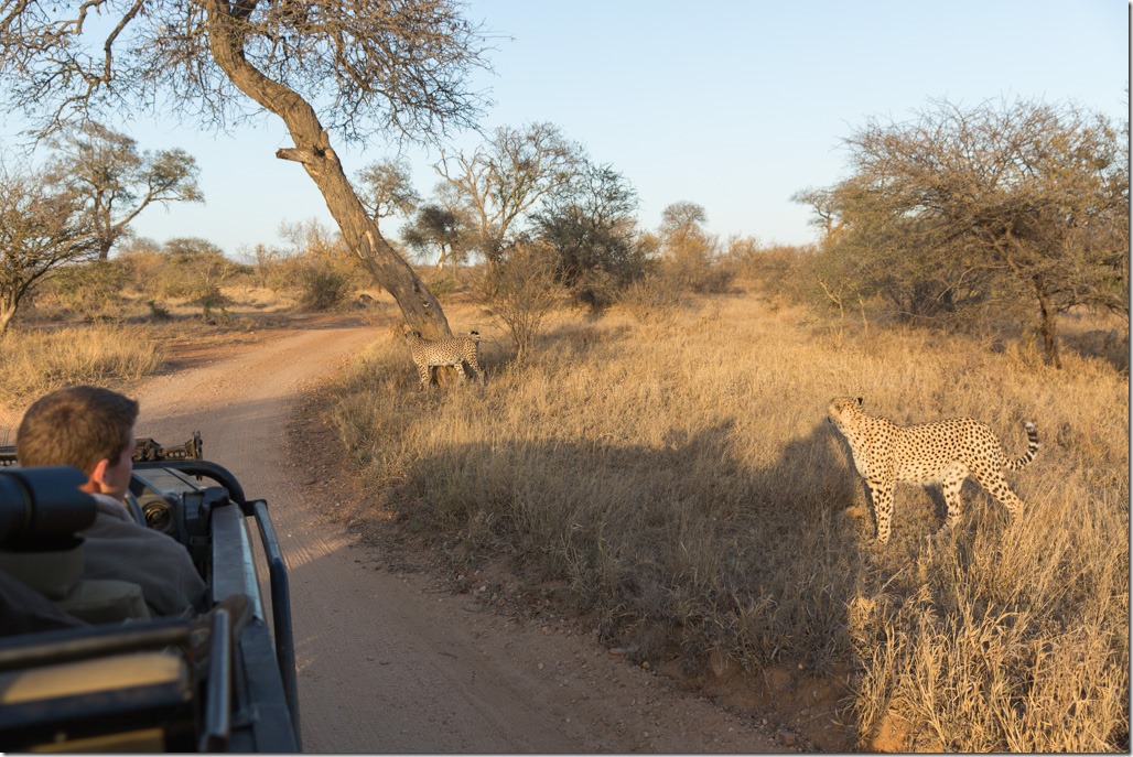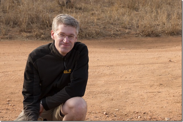 Habe ich schon einmal erwähnt, dass es hier um diese Jahreszeit kalt am Morgen ist? Wir waren nach den letzten beiden wärmen Tagen heute alle etwas zu optimistisch in den neuen Tag gestartet. Ich bereits um 06:00 mit kurzen Hosen und Hemd. Die längere Suchfahrt nach den beiden Geparden hatte uns in den Gänsehaut Bereich gebracht, aber dank den Zwiebeln war die Situation bald wieder unter Kontrolle. Zur Abwechslung auch einmal ein Bild aus anderer Perspektive. Man sieht hier einen “Homo Sapiens”.