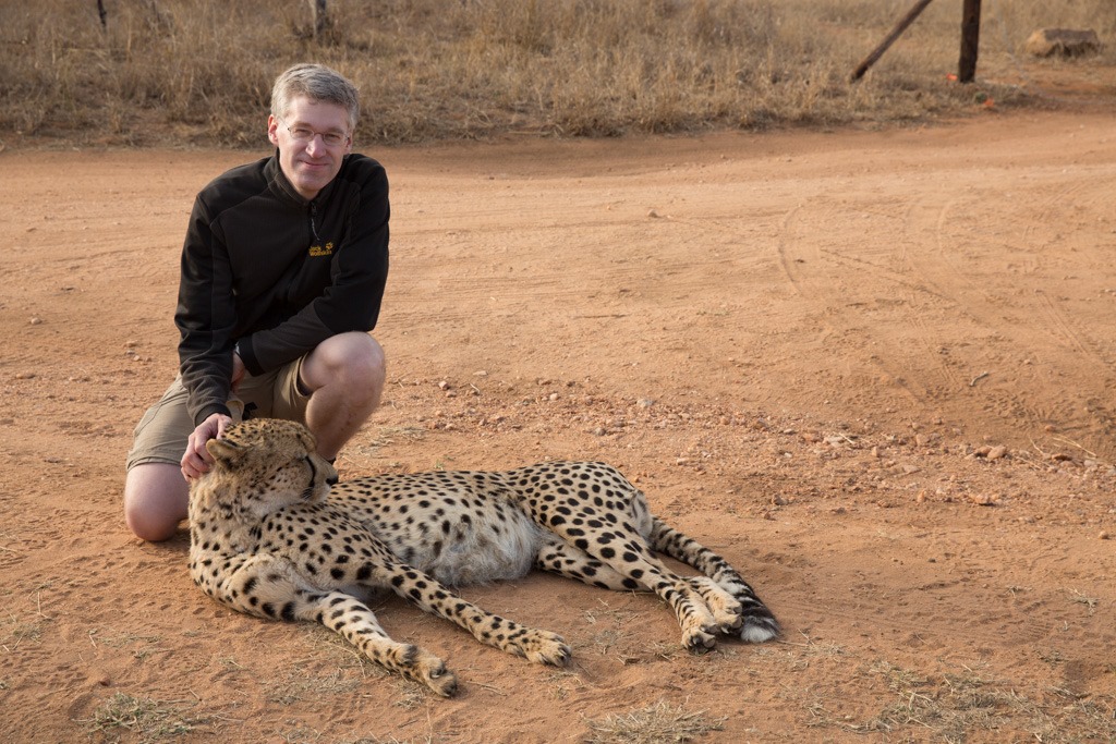 Und hier ist noch die Auflösung unseres Rätsels: “Home sapiens” in Kontakt mit “Acinonyx jubatus”.