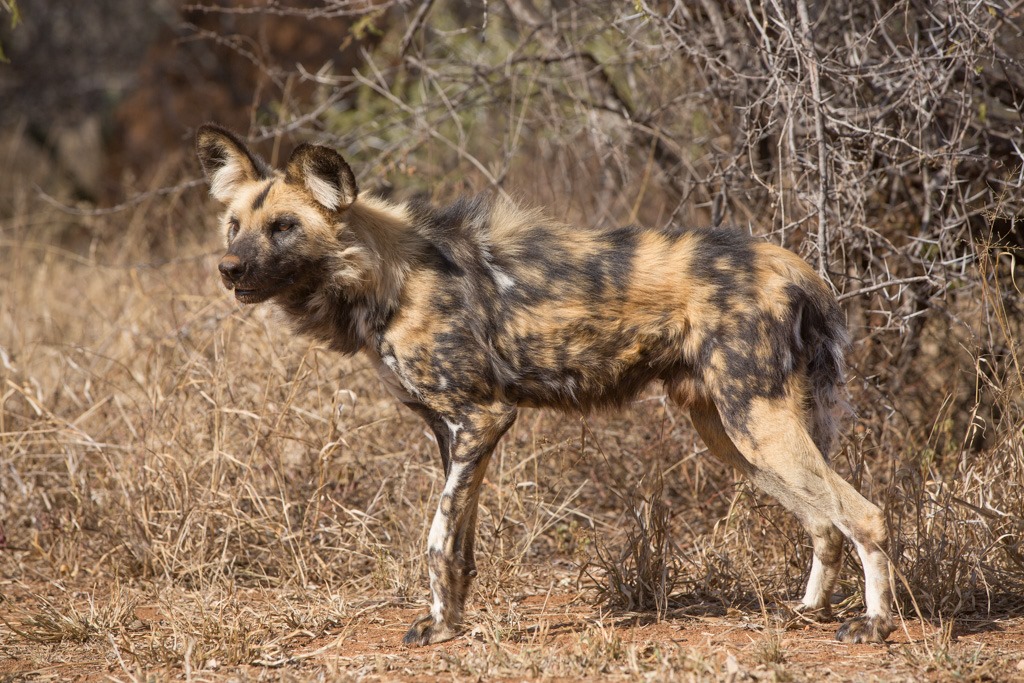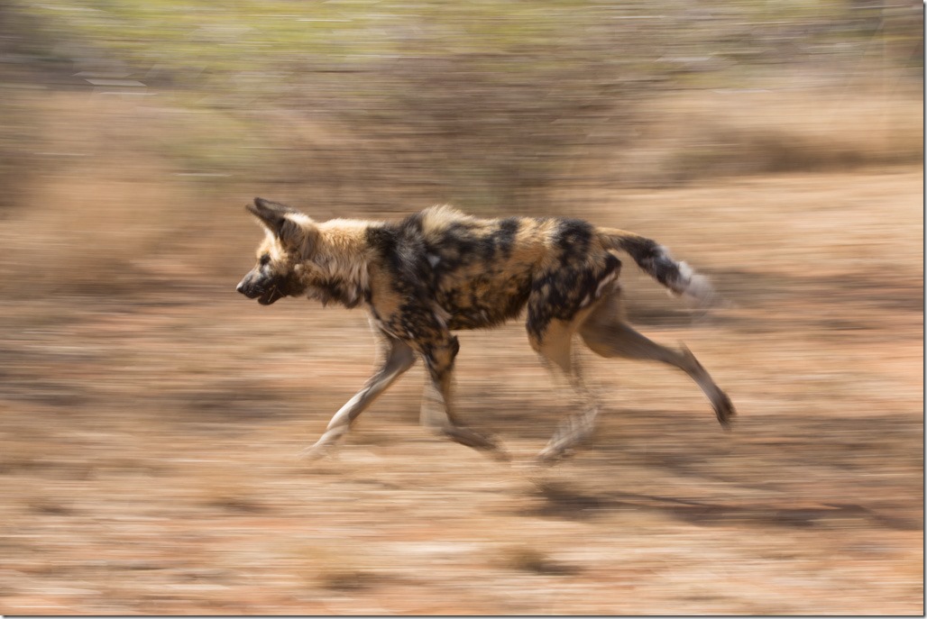 Wildhunde schlafen oder sie rennen rum, etwas anderes kennen sie offenbar nicht. Eine ganz schön schwierige Aufgabe für einen Fotografen, ein vernünftiges Bild zu machen. Und nochmals Dingo in Bewegung