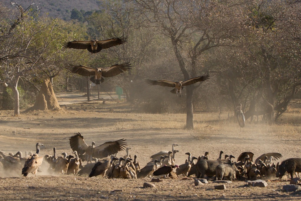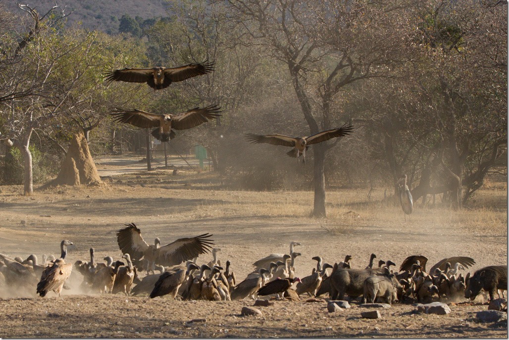 Heute ging unsere Reise zur Moholoholo Forst Camp, dazu morgen wohl mehr. Heute hatten wir nämlich um 16:00 noch einen wichtigen Termin: Die Geier Fütterung. Neben der Lodge hat es in diesem “Private Reserve” auch noch ein Tier “Sanatorium”, das sich um kranke und verletzte Tiere kümmert. Täglich werden hier die Geier gefüttert. Wir sind in Position. Doch wo sind die Geier?