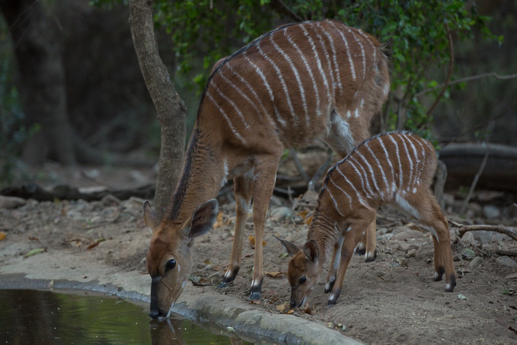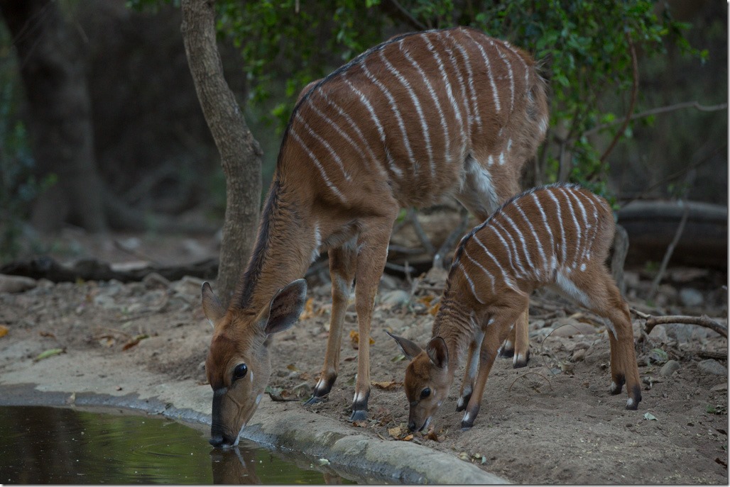 Auch haben wir hier noch eine neue Tierart kennen gelernt: Die Nyalas. Da sie hier gefüttert werden, sind sie recht zahm und kommen bis auf wenige Meter heran.