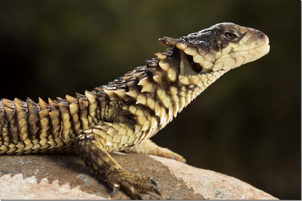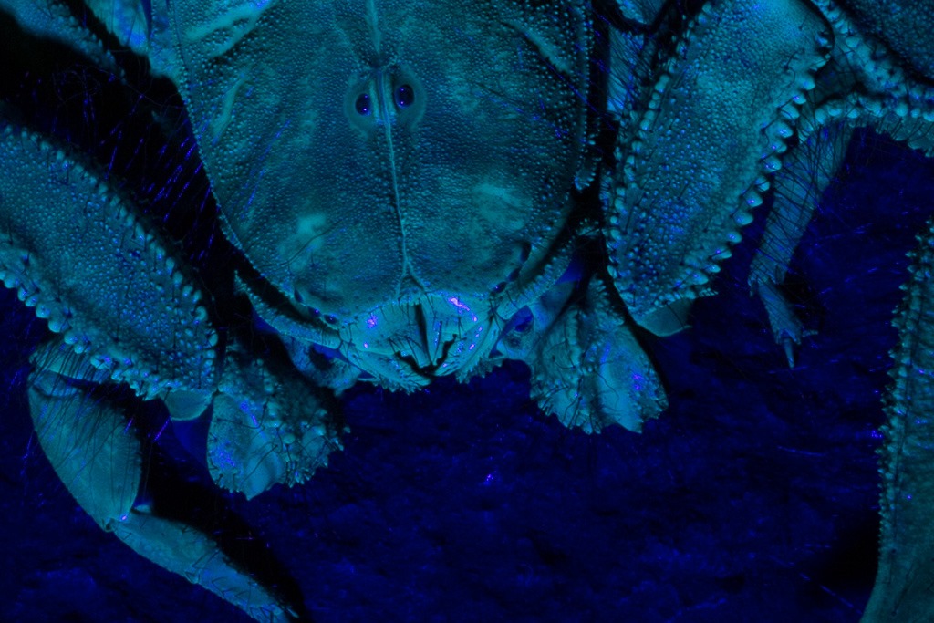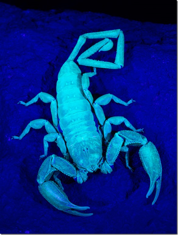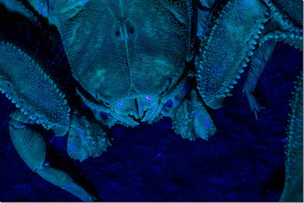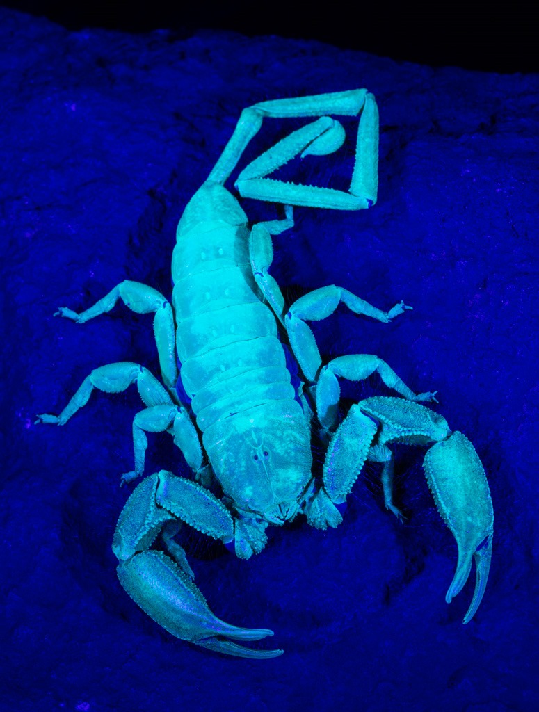 Der Tagverlauf war so aufgebaut, dass wir mit den ungiftigen, sich kaum bewegenden Tieren anfingen und dann langsam den “Schwierigkeitsgrad” steigerten. Zuerst an der Reihe war ein “Flat Rock Scorpion” – ein “Flacher Steinskoprion”. Als Spezialeffekt verwendeten wir UV-Licht für die Beleuchtung.