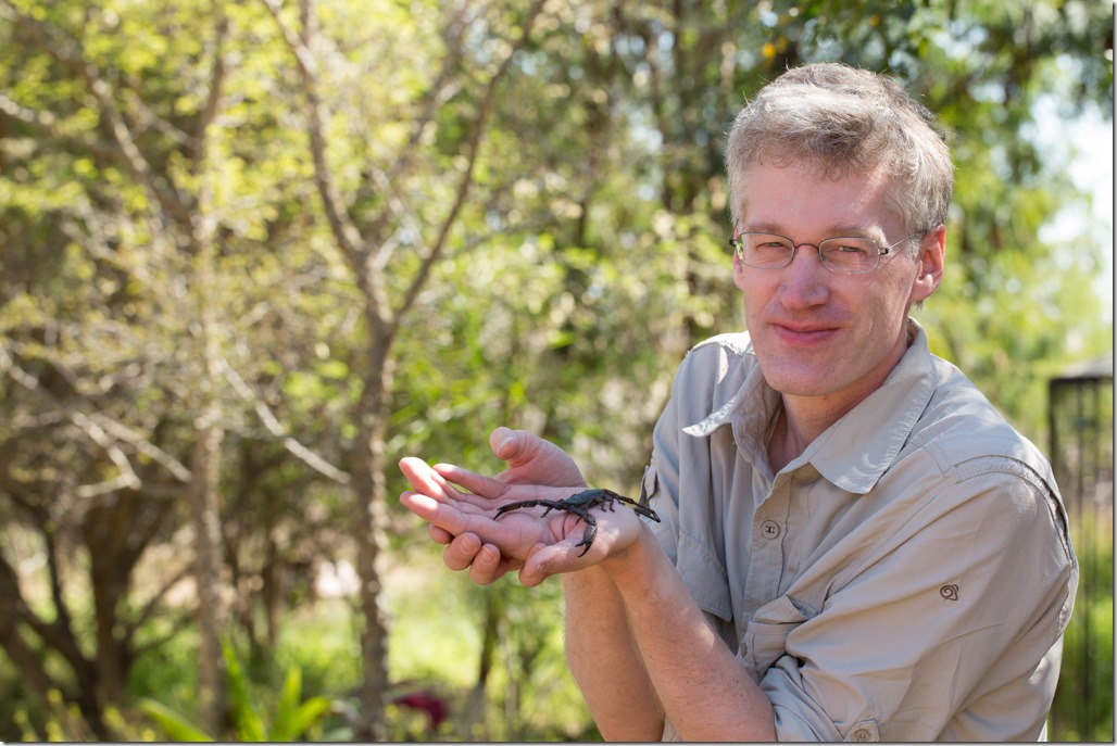 Die eigentliche Safari im Krüger Park war ja schon fertig. Im Tschukudu Park war der erste, heute der zweite Teil der “Extension”, den ich auch gebucht hatte. Geplant für heute war ein Besuch im “Khamai Reptile Center”. Dort kann man Reptilien aller Art beobachten. Das Center bietet auch ein spezielles Programm für Fotografen an. Dabei kann man die Reptilien ohne Glass und ganz nahe fotografieren und auch mit den Einstellung experimentieren. Und jemand, der Probleme mit Schlangen, Skorpionen und dergleichen hat, kann den Tag gleich überspringen. Es gibt nämlich sonst nichts anderes.