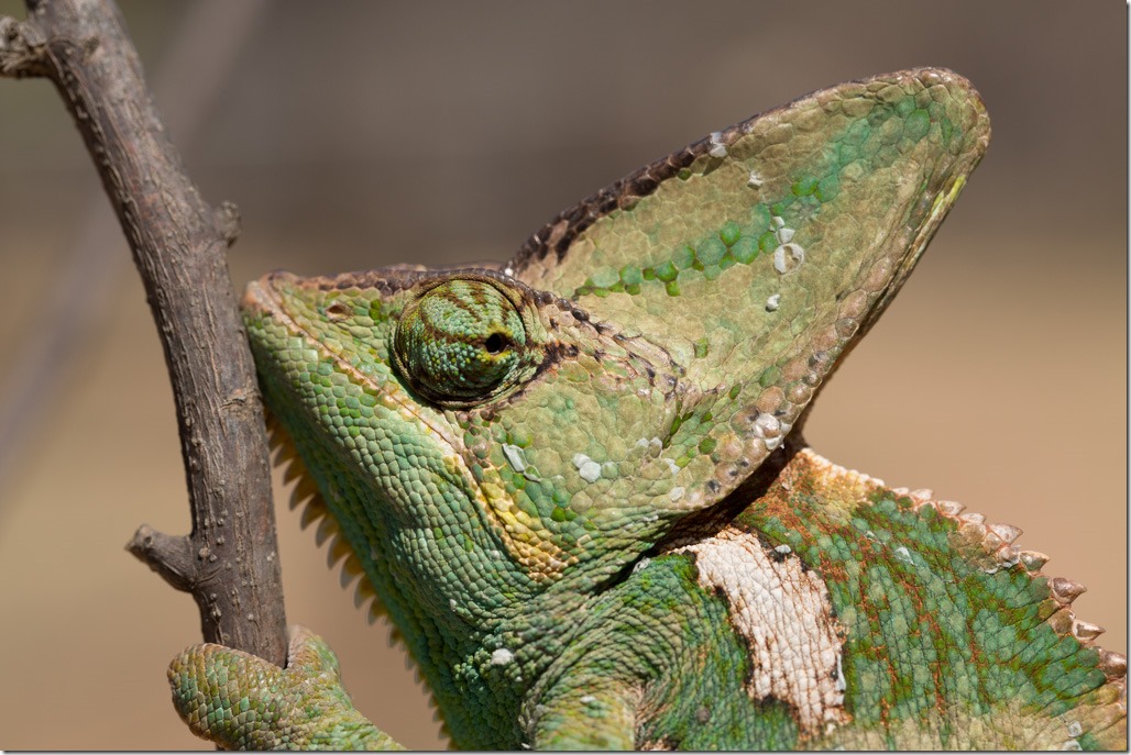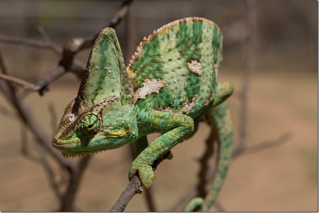 Es ist sehr interessant zu beobachten, wie das Chamäleon beide Augen unabhängig voneinander bewegen kann.