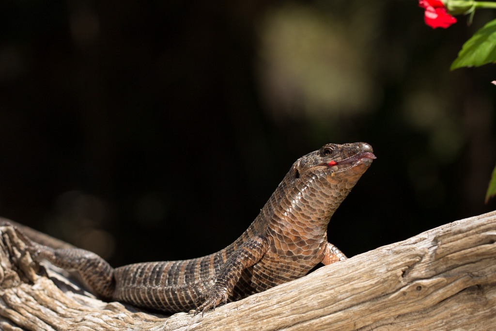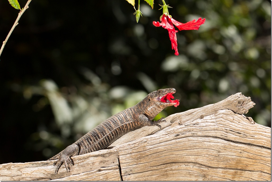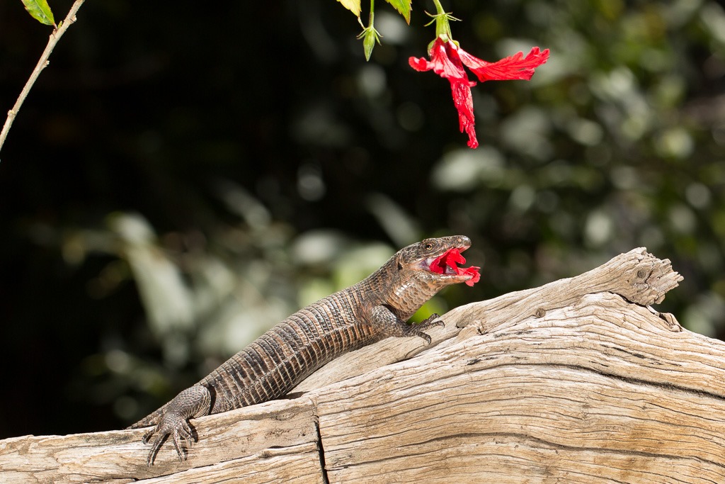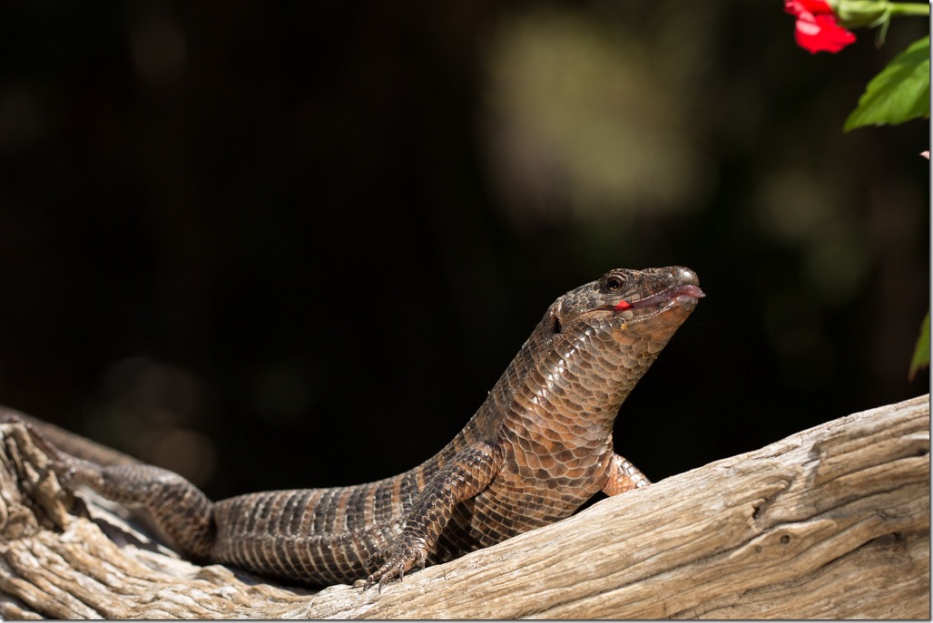 Zwischen den Schlangen konnten wir dann den “Giant Plated LIzard” beobachten, einen Vegetarier mit speziellen Gelüsten nach farbigen Blüten.