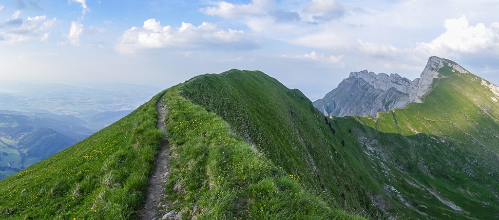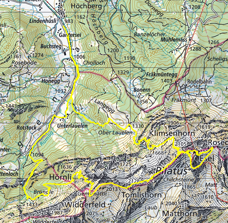 After my pretty long hike on the weekend my sport watch was telling me to take it easy for 37h. 37 hours? Seriously? I didn’t know that I am in such a bad shape. Ok, I have to admit that on Sunday my legs were rather tired. But regardless of my shape the recovery time is over now. So why not do something really easy tonight? As I still had one trail on Pilatus on my whish list the target for today’s late afternoon hike was quickly set. The trail is called “Alter Tomlisweg” and it is going from the Tomlishorn to Pilatus on a band of grass just below the rocks. As the official hiking trail is on the other side of the mountain I didn’t expect much “traffic” on my side. I only had to keep an eye on animals (Steinböcke und Gemse) and rocks falling from their movements. Time permitting I also decided to do a quick loop to the Esel mountain after reaching the top of Pilatus . Last time I did the Esel couple of weeks ago I got minimal grades for my climbing/hiking style which means I somehow reached the top. This time I will do better!