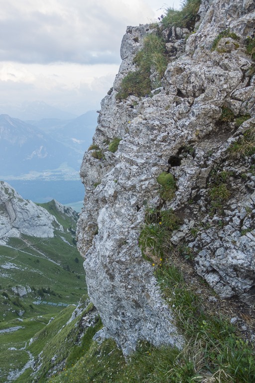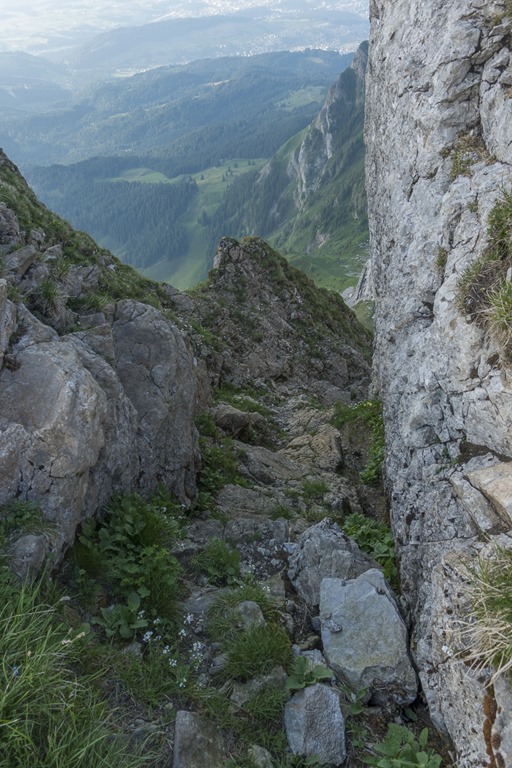 I didn’t do much research on the internet about the Tomlisweg trail but I know that it was supposed to start anywhere here. So I was regularly checking the ridge for any sign of a trail. Nothing, except a more or less vertical drop.