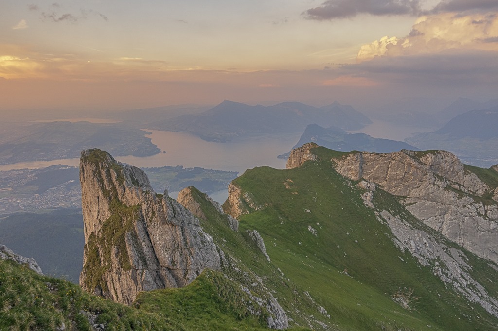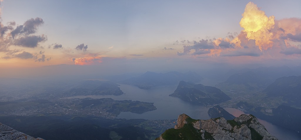 The Vierwaldstättersee on the other side. Not a perfect evening in terms of visibility but it is always nice here.