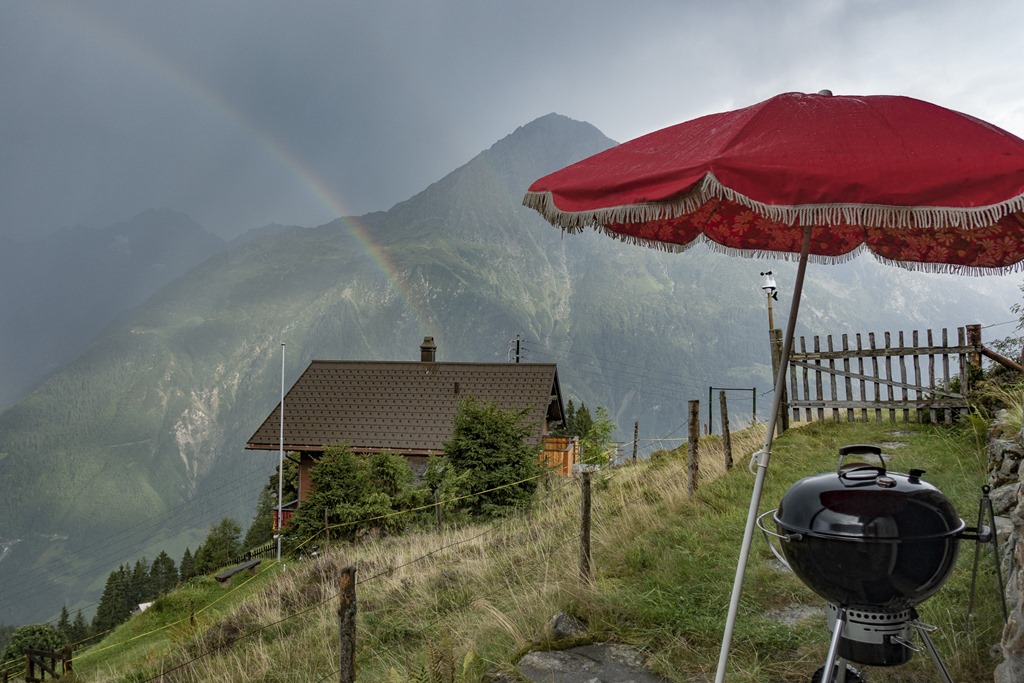 The thunderstorm was not a problem since I had my (patent-pending) sunshade-grill-o-rain installed. However there was still a problem: After the rain there was a rainbow forming which was disturbing our grilling quite a bit since we had to watch it.
