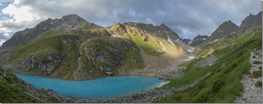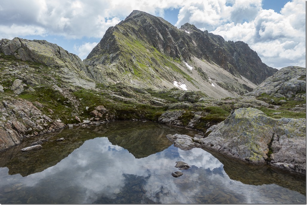Before going down from the Wichelpass through the Schindlachtal and returning to my hut I decided to make a quick visit to the Wichelhorn in order to check out the trail. It’s not an officially maintained mountain hiking trail even though it is marked. The reason why I wanted to check it was that starting at my hut you could do a very nice hike around the mountain and I am planning something like that with some friends. But I had to admit that a few places on the ridge are probably too steep for somebody who has never done any hikes in the mountains … so I need to come up with another plan … skip the hiking part and start the party straight away? … Maybe not such a bad plan …