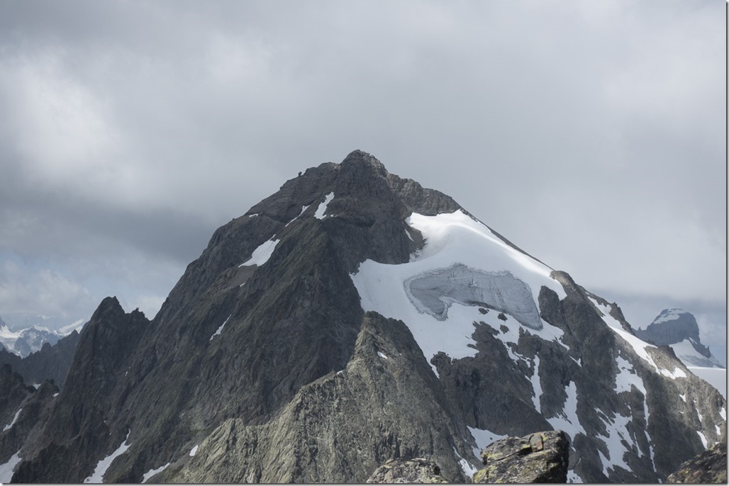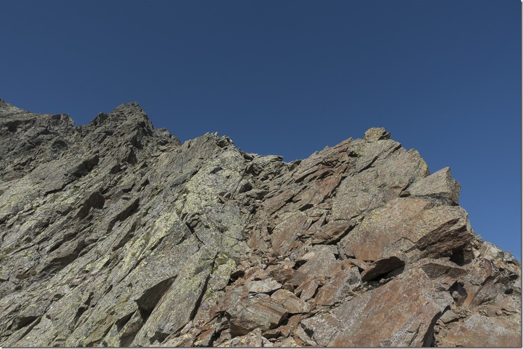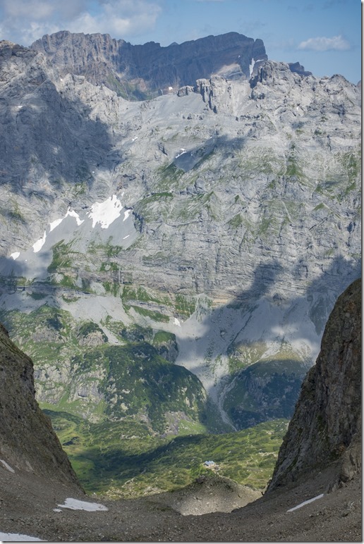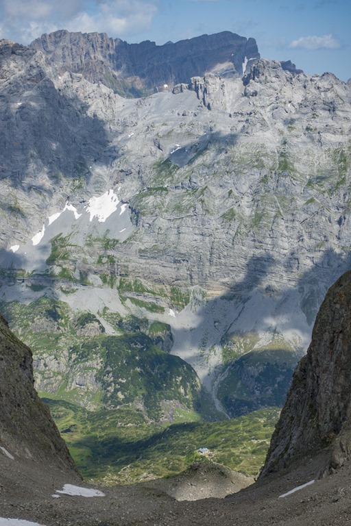 From the Ruchpass you can see the Krönten hut deep down. Actually the trail from there up here is quite nice as long as you are not yet in the area where you have to walk on loose rubble. There you are looking for the fast forward button. But there is none. An the same fate you have to suffer on the other side of the Ruchpass into the Leutschach valley. Luckily for me this time I was just going downwards. So you just need to check if there are any hikers further down before you start creating an average avalanche of falling rocks by just going straight down. The marked trail which is zig-zagging down would just make you suffer longer. As I had decided to go to the Wichelhorn and do a loop back to Arni I had to first go up the the Wichel pass. Let’s just let’s fast forward to there as nothing spectacular is in between.