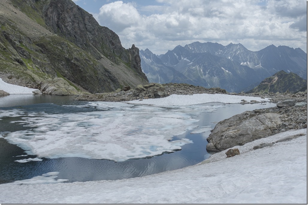 The way back to my hut was accelerated by the fact that there was still snow in the upper part of the Schindlach Valley and I could slide down. And of course I skipped the part where you could “refresh” yourself in a little lake which was still covered by ice and snow. I am not crazy!