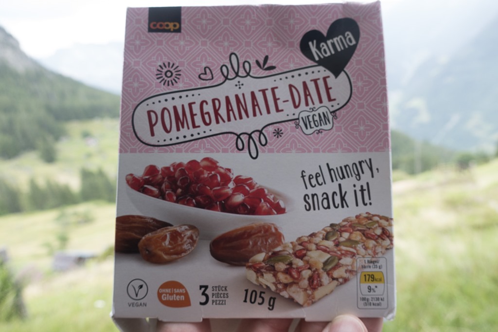 When I was cleaning my bag pack I figured out that today’s hiking was sponsored by vegan gluten-free “Pomegranate-Date”