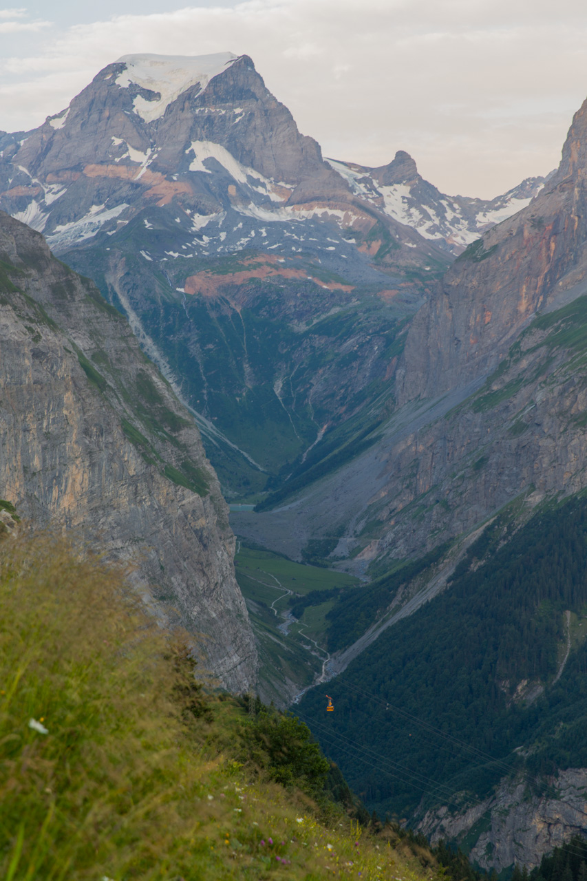 Schräg gegenüber der Tödi und darunter die Seilbahn, mit der die “faulen” Wanderer die ersten 1000 Höhenmeter zurücklegen.