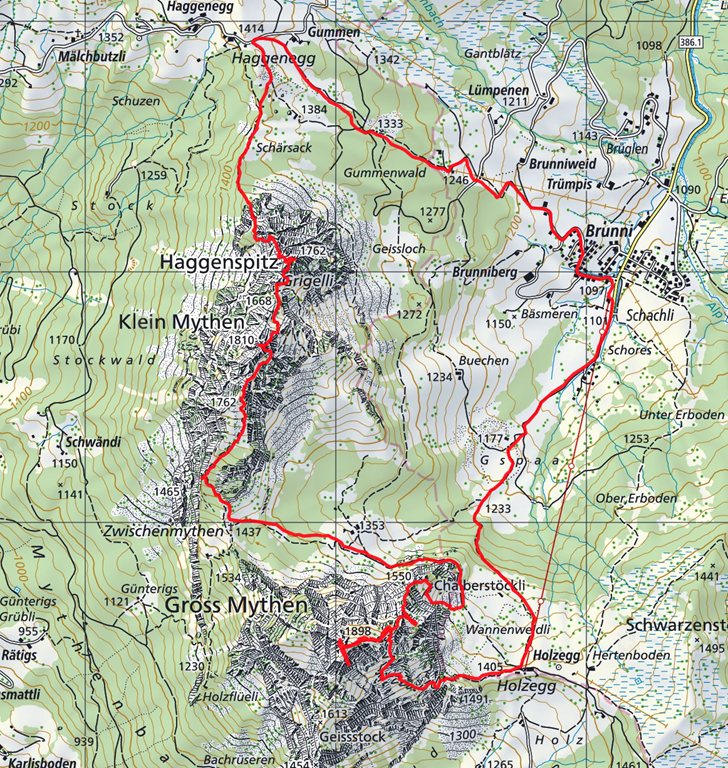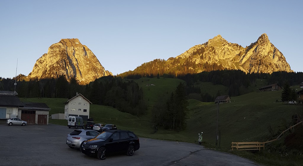 Da ich letzte Woche am Ruchälplistock noch deutlich im Schnee gewühlt hatte, wollte ich dieses Wochenende etwas ohne Schnee unternehmen. Ergo fielen alle Berge über 2000 Meter ins Wasser bzw. den Schnee. Was wäre unter diesen Vorgaben nicht besser geeignet als einen Abstecher zu den beiden Mythen zu machen. Und wenn man schon einmal da ist, kann man auch gleich noch den Haggenspitz besuchen. Für heute hatte ich mir die Chalberstöckli-Route zum Grossen Mythen vorgenommen. Damit kann man sich den Aufstieg über den normalen Wanderweg bis Kehre 22 sparen, wo der durchaus ansprechende Weg übers Rot Grätli abzweigt.
