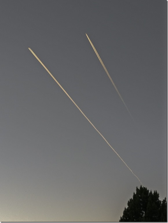 Zwei Flugzeuge wollen vor der aufgehenden Sonne fliehen. Ein hoffnungsloses Unterfangen.