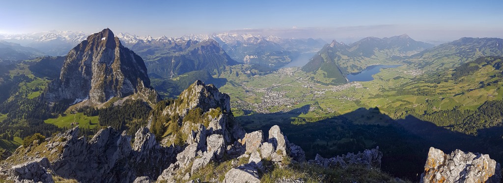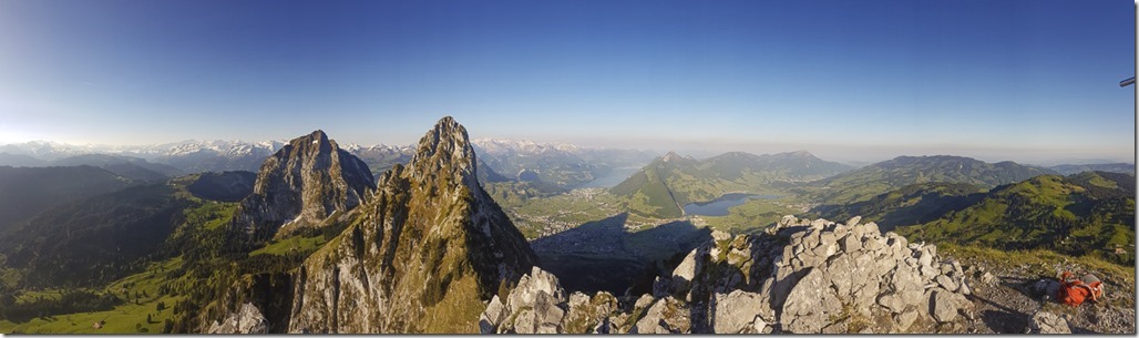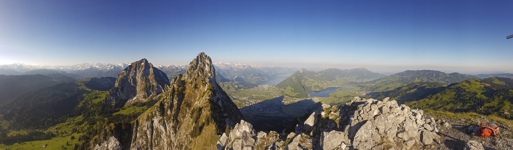 Auf dem Gipfel des Haggenspitz hat man einen guten Ausblick auf die beiden Mythen