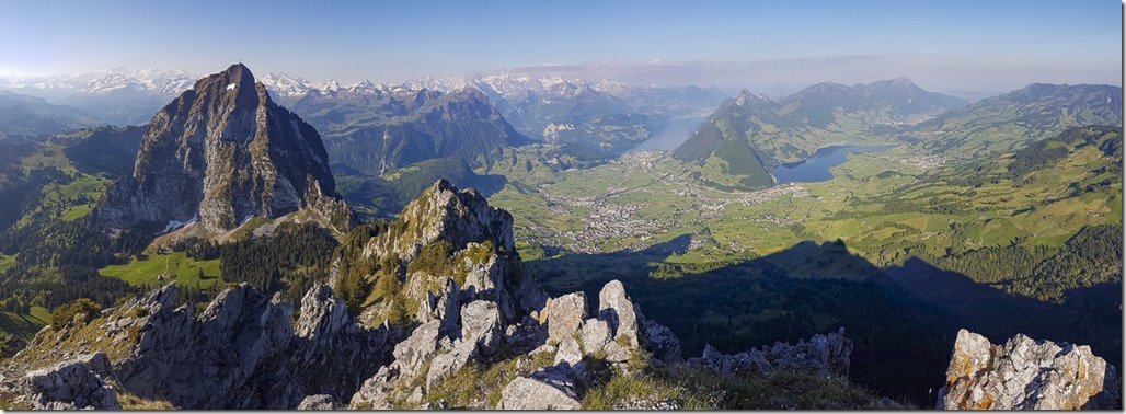 Grosse und Kleine Mythen und Haggenspitz in der Morgensonne.