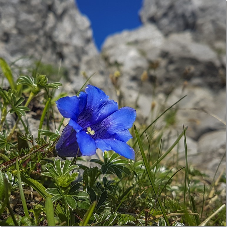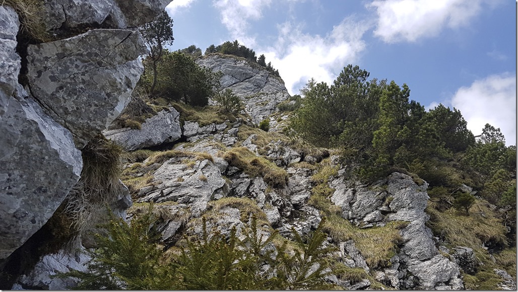 Obwohl ich mir beim Aufstieg auch eine Pause gönnte, traf ich schon bald auf den Wanderer, den ich zuvor schon aus der Ferne gesehen hatte. Er war recht langsam, sprich vorsichtig, unterwegs. Offensichtlich hatte er neue Bergschuhe, die er hier einweihen wollte.