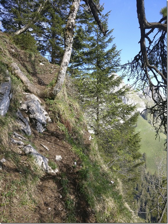 Bis auf eine Stelle, bei der ich ein Fixseil anfänglich übersah, hielten sich die Schwierigkeiten in Grenzen. Es ist zwar alles recht steil und zum Teil auch exponiert, aber von unten sieht es irgendwie “gfürchiger” aus.