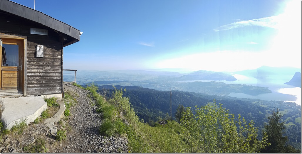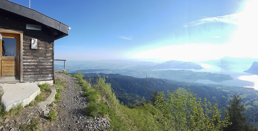 Die Aussicht von der Steinbockhütte Richtung Vierwaldstättersee.