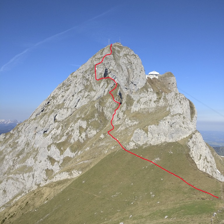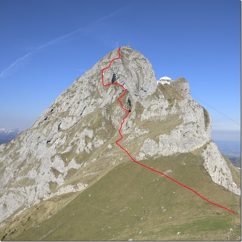 Der Weiterweg glich schon fast einem Spaziergang. Bald schon hatte ich den Esel im Visier. Wie es aussah, war der Zugang von hinten für die Touristen noch geschlossen. Normalerweise tummeln sich nämlich auf dem Esel gefühlte 10000 Chinesen herum, denn jeder Chinese, der die Schweiz besucht, endet irgendwann auf dem Esel.