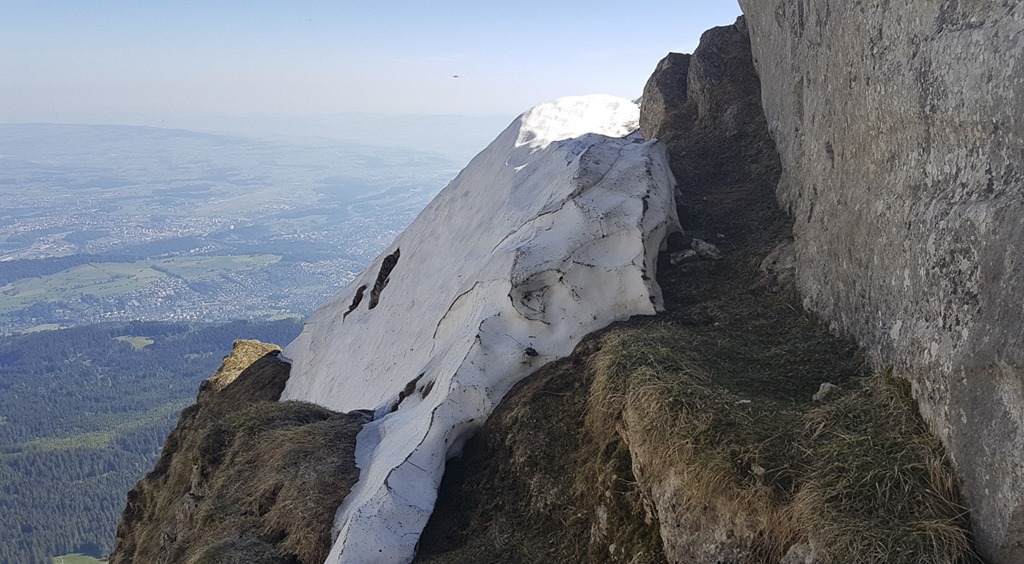 Beim Abstieg kam mir der noch vorhandene Schnee zu Hilfe. Das geht deutlich schneller und macht erst noch Spass. Mir taten dabei nur die Wanderer im Aufstieg leid, an denen ich vorbeibrause.