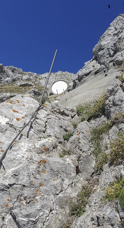 Ganz vereinzelt kam sogar ein Seil zu Hilfe. Zwingend sind die Stellen jedoch nicht. Man kommt einfach schneller voran. Die Weg war manchmal auch sehr luftig, nur hatte ich hier im Vergleich zum Ängifeld soliden Fels als Untergrund.