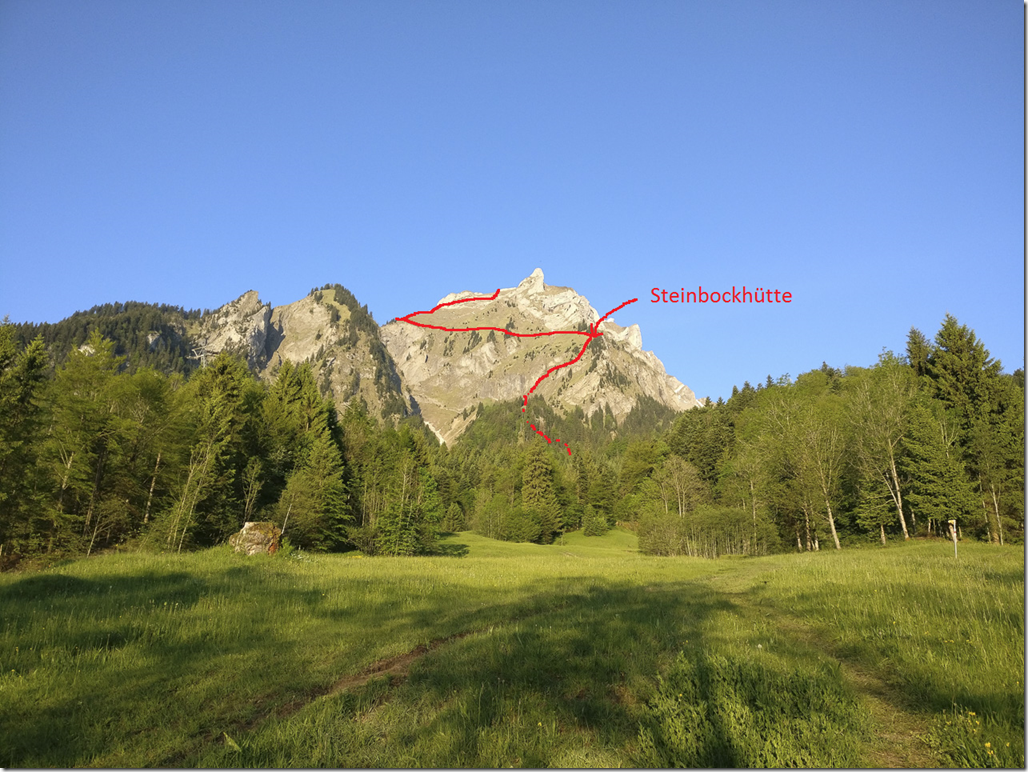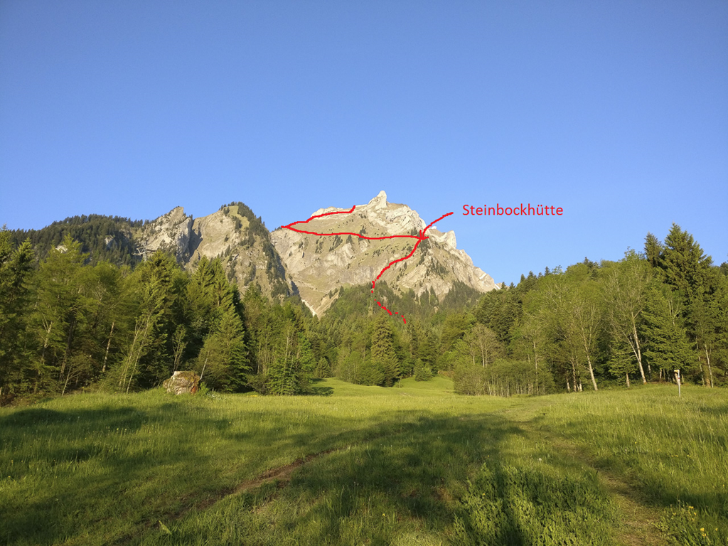 Nach der Steinbockhütte machte ich mich Richtung Ängifeld auf. Schon bald wurde klar, wieso hier bei nassen Bedingungen dringend von einer Begehung abgeraten wird. Die Wiese ist wirklich sehr steil. Glücklicherweise waren heute die Bedingungen aber ideal. Ein Pickel wäre trotzdem nicht schlecht gewesen. Zu blöde, dass ich den im Arni habe und nicht hier …