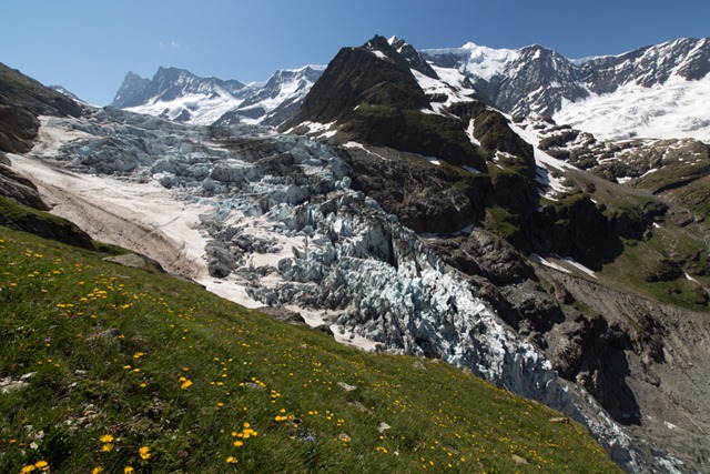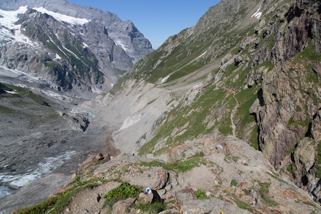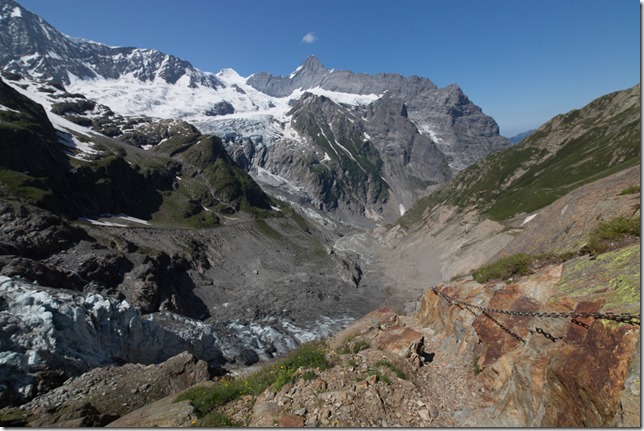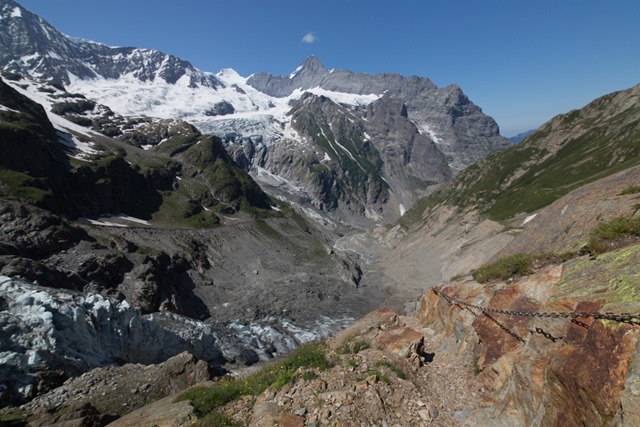 Beim Aufstieg kamen mit zahlreiche Leute entgegen, die von einer Hochtour abstiegen. Beim Rückweg war es dann solche, die zur Schreckhornhütte aufstiegen, um am nächsten einen Tour zu machen. Tageswanderer scheinen hier kaum unterwegs zu sei, zumindest nach der Ausrüstung zu beurteilen.