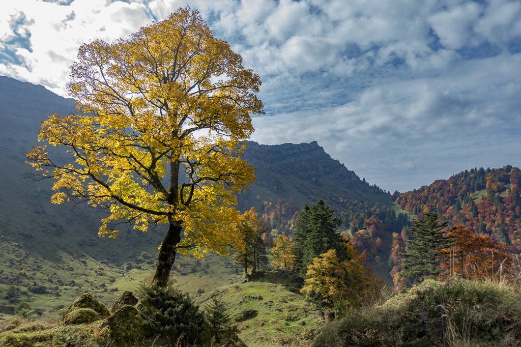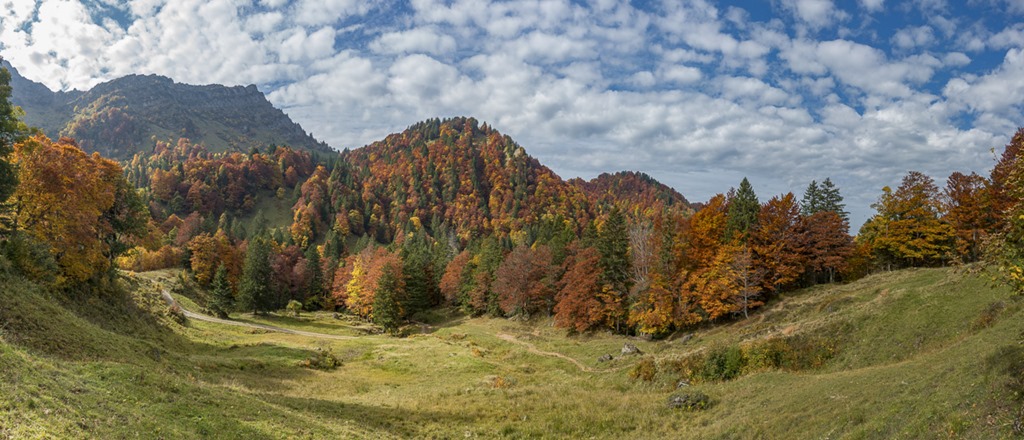 Regardless of how you turn it around, autumn is coming and together with it the fantastic colours which makes it my favourite season of the year. The problem this weekend was that the weather forecast was pretty inconsistent. So I didn’t have any specific plans for the weekend. But as I was doing random things in my flat on Saturday morning I recognized that the weather was much better than expected. The sky was blue and the sun was shining. Initially it thought that the clouds would show up soon but it got even better by the minute. This is not acceptable! Sitting home, doing nothing! I quickly packed my hiking stuff and headed out. Where? Yeah that was a good question as I couldn’t be bothered to check any books. I wanted to go to a nice place where I could enjoy the day as much as possible. As it was already after 10 I also didn’t want to drive too far. So I eventually figured out, while already driving … cough cough …, that the Speer Mountain could be a nice destination. On one side of it there is a little road which allows you to get rather close to the mountain. Today, I didn’t want to break any records. I was in lazy mode.