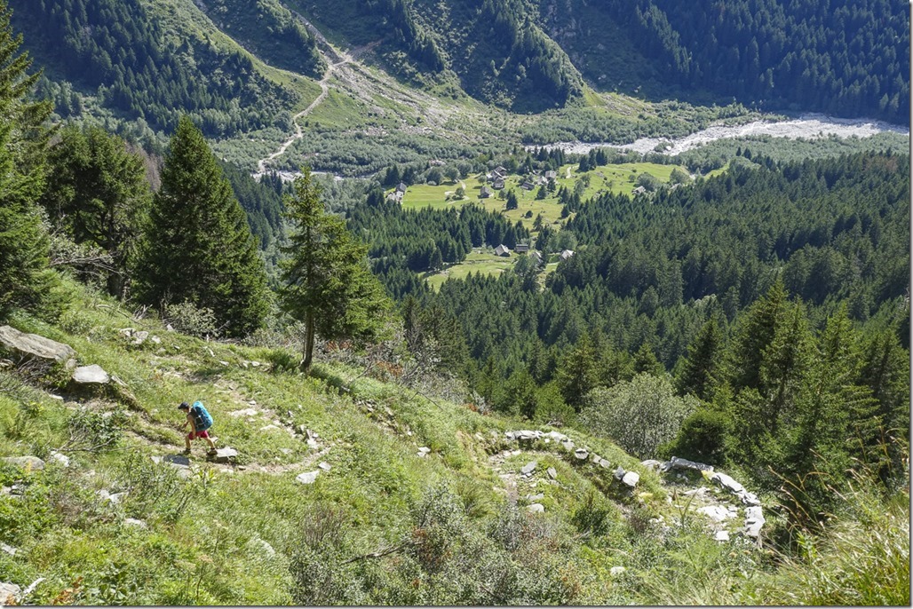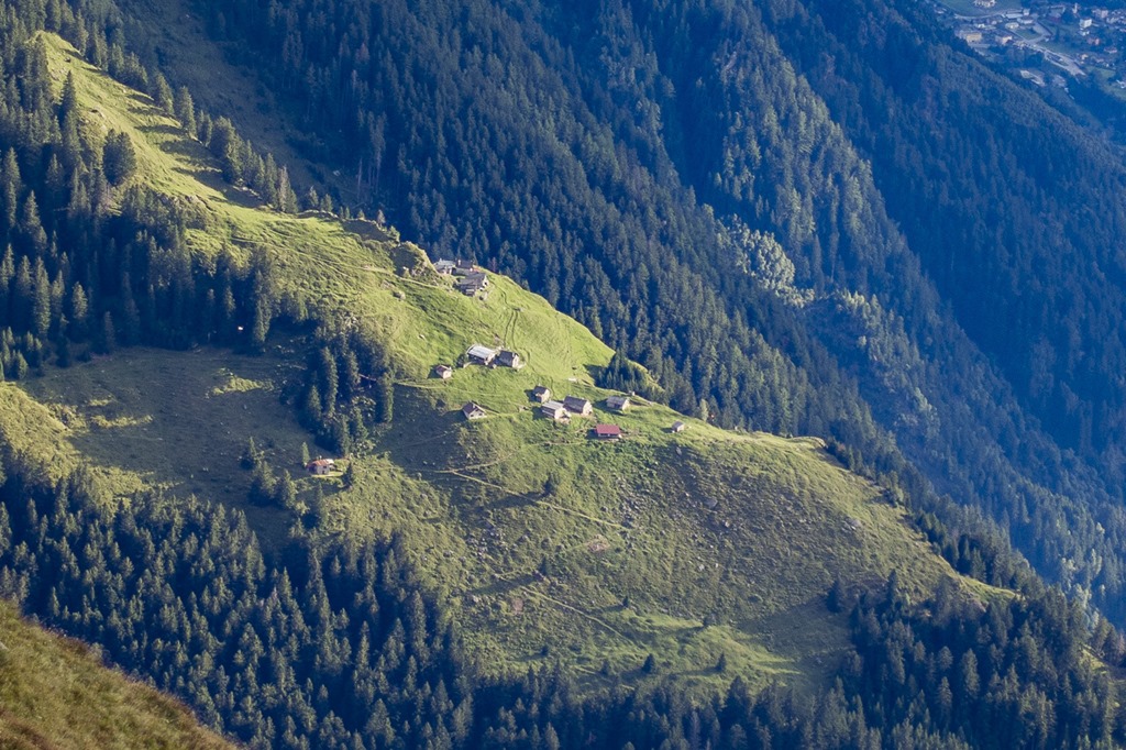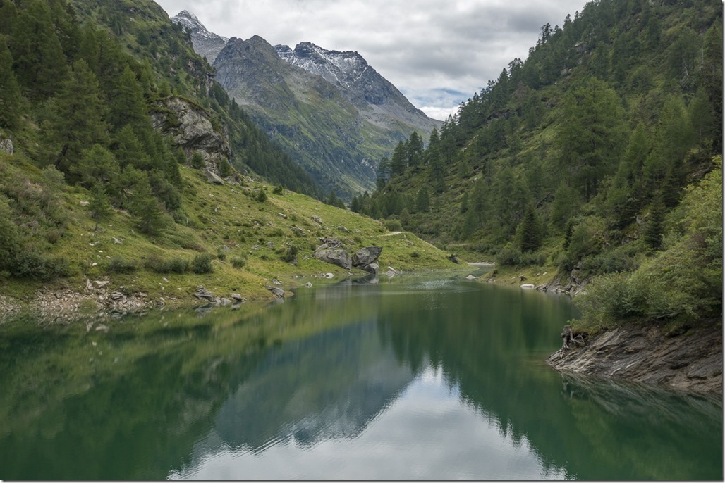 This small little artificial lake was actually the end of the ridge but it was not the end of our hike as we still had to go down another 600m of altitude. As the pizza talk had mad both of us quite hungry we accelerated our steps and made it down to the little village in half of the planed time, just to discover that we were too late for lunch time and all the restaurants had already closed … Damn. After taking the bus to Biasca we were got our pizza. So good, yum yum … !