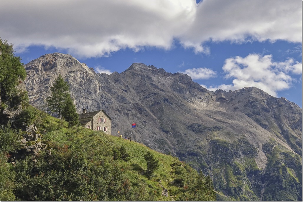 From a distance you could already see the alpine hut which was located just on the pass. Actually you could see the flag of the hut from even further down.